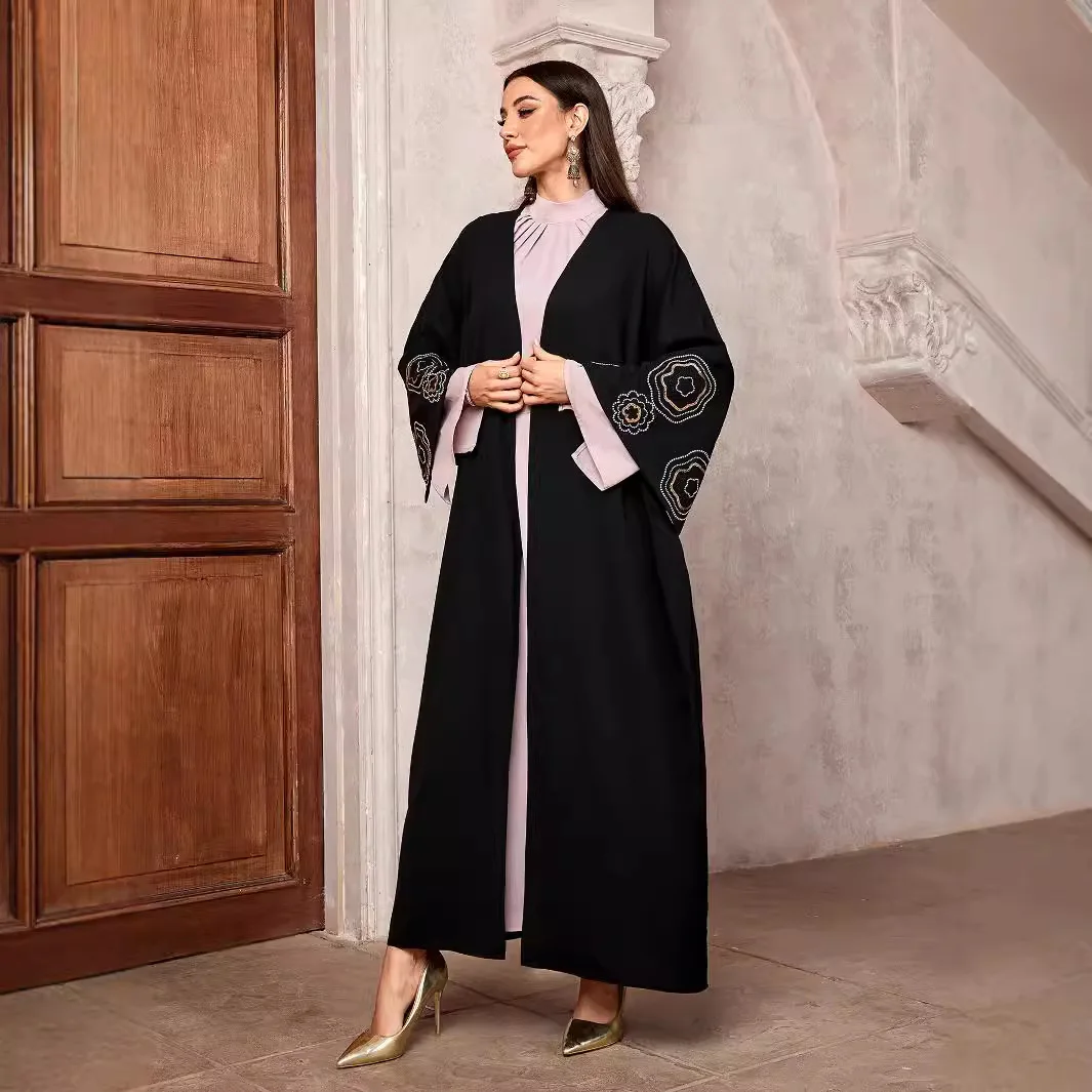 Women's Elegant Solid Arabian Robe Cardigan New Middle Eastern Muslim Fashion Batwing Sleeve ODM InspiredClothing Floor-Length