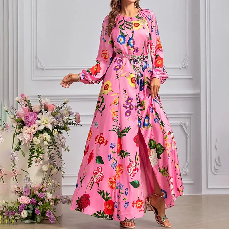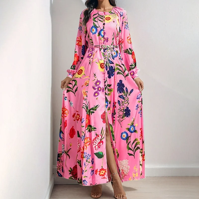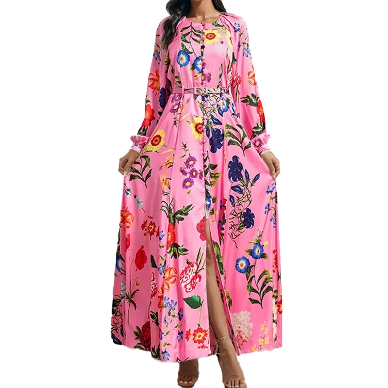 2025 European American Style Floral Printed Dress Elegant Casual Floor-Length for Women Natural OEM 2XL DayOEM Weaving Method