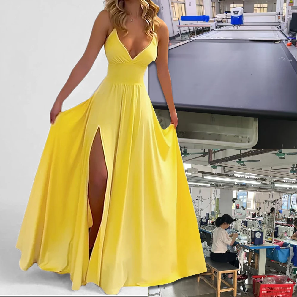 2025 Spring New European American Fashion Casual Slim Slit Chiffon Pure Color Floor-Length Suspenders Solid Pattern Natural