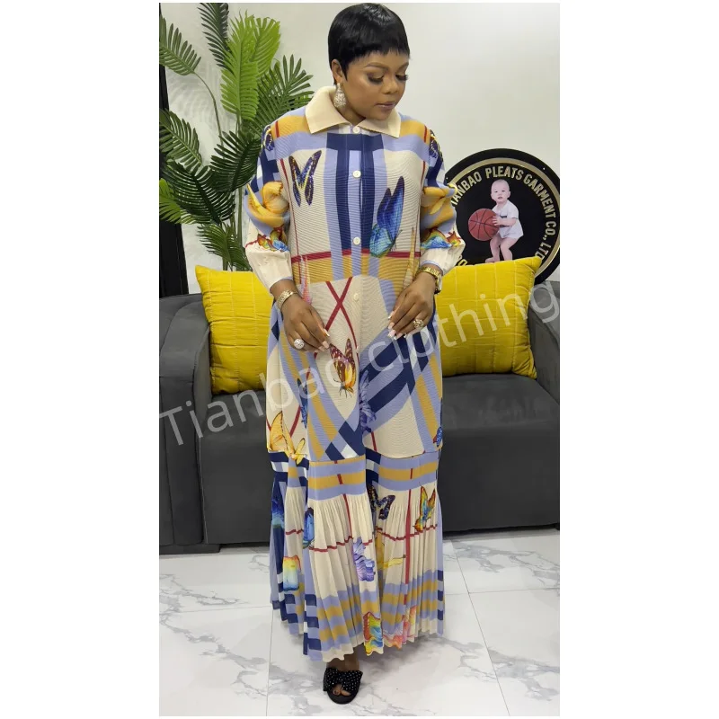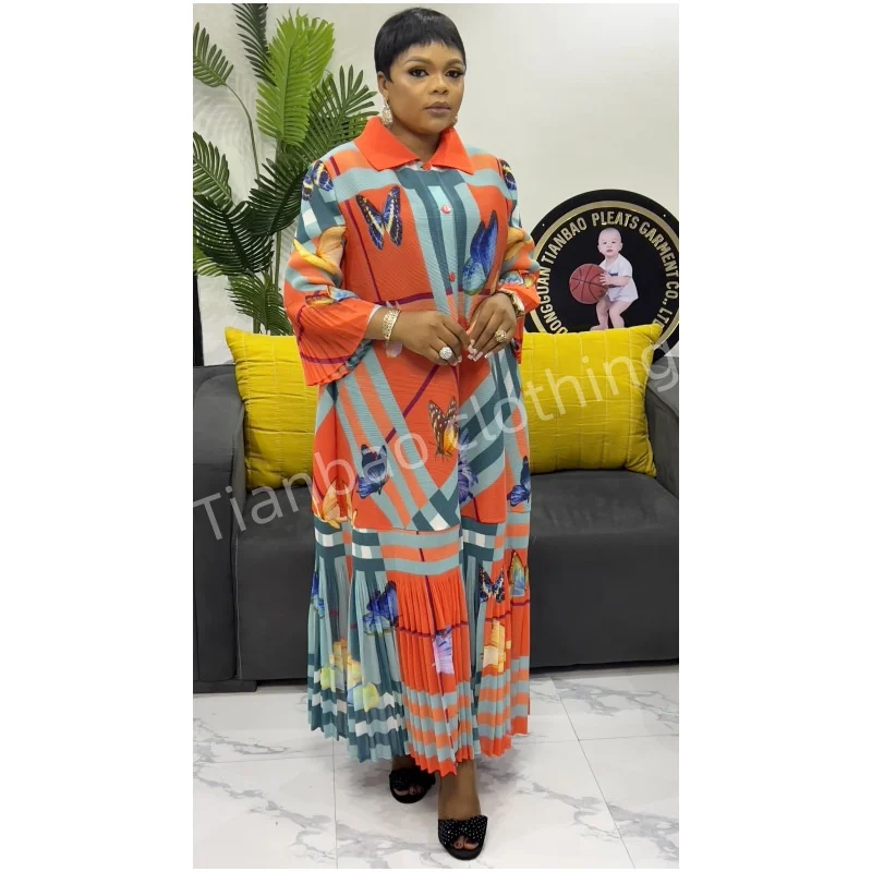 Miyake Women's Elegant Large Size Floor-Length Cardigan Skirt New Geometric Casual Design Washable Chiffon for Spring Summer