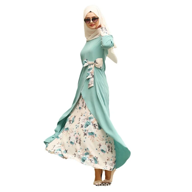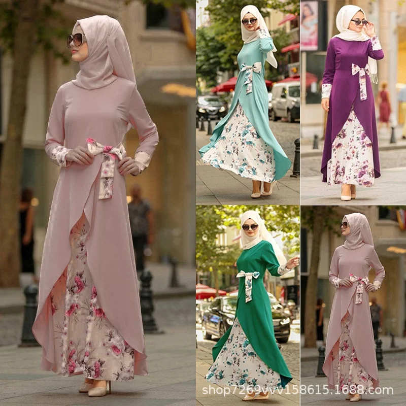 European American Bestseller New Ethnic Two-Piece Printed Abaya Custom Processed Casual Polyester Muslim Clothing Spring