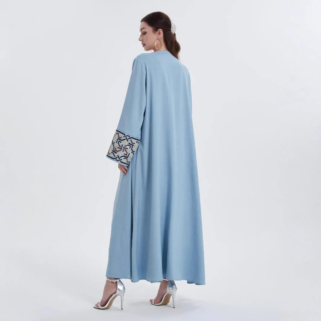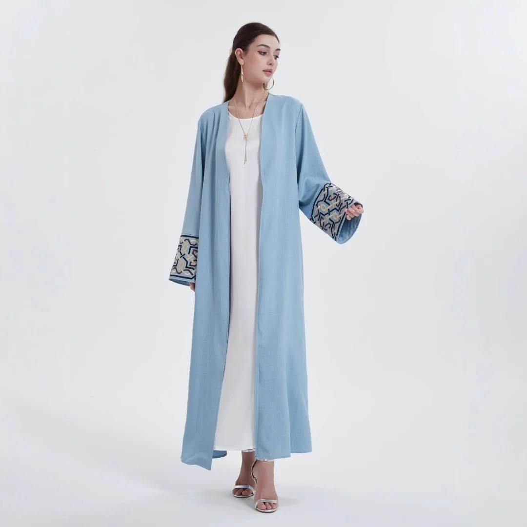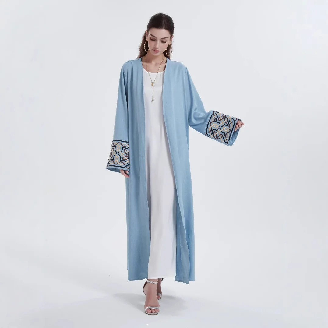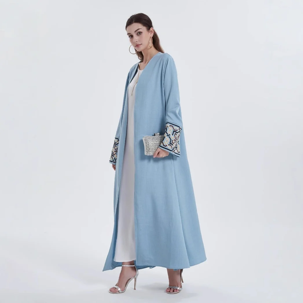 European American Middle Eastern Modest Style Women's Robe Casual Cardigan Abaya Embroidered Cuffs ODM/OEM Polyester Autumn