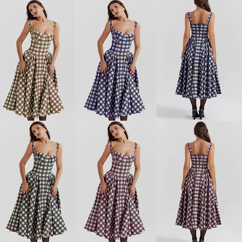Women's Summer New French Retro Style Button Solid Pattern Chiffon Outfits Casual Long Floor-Length for Plain Dyed