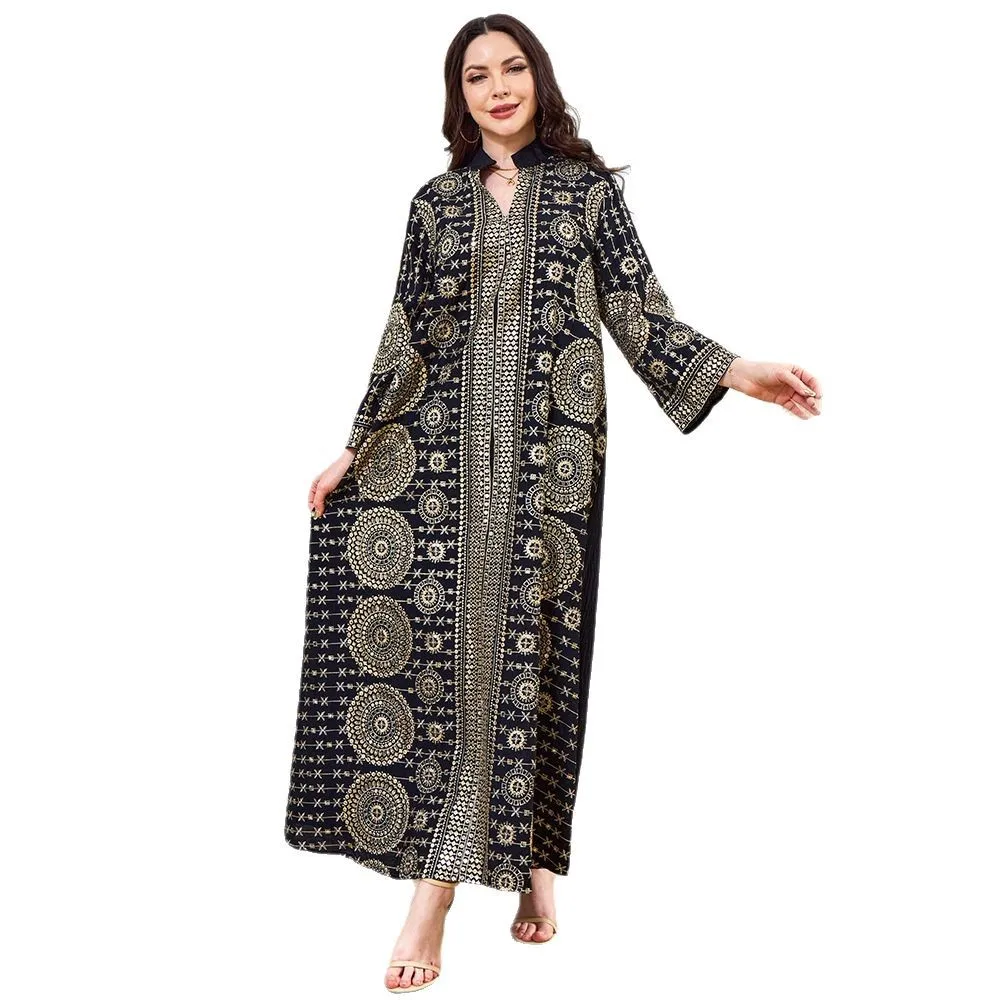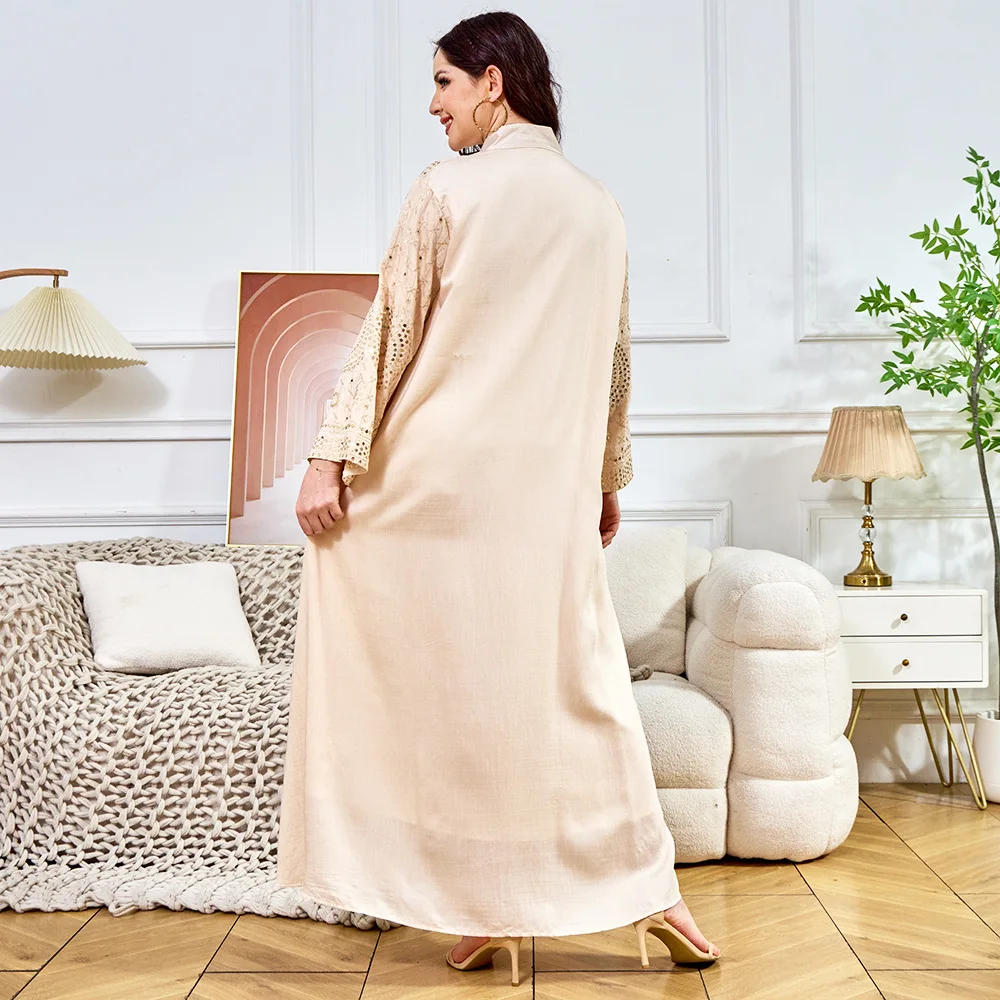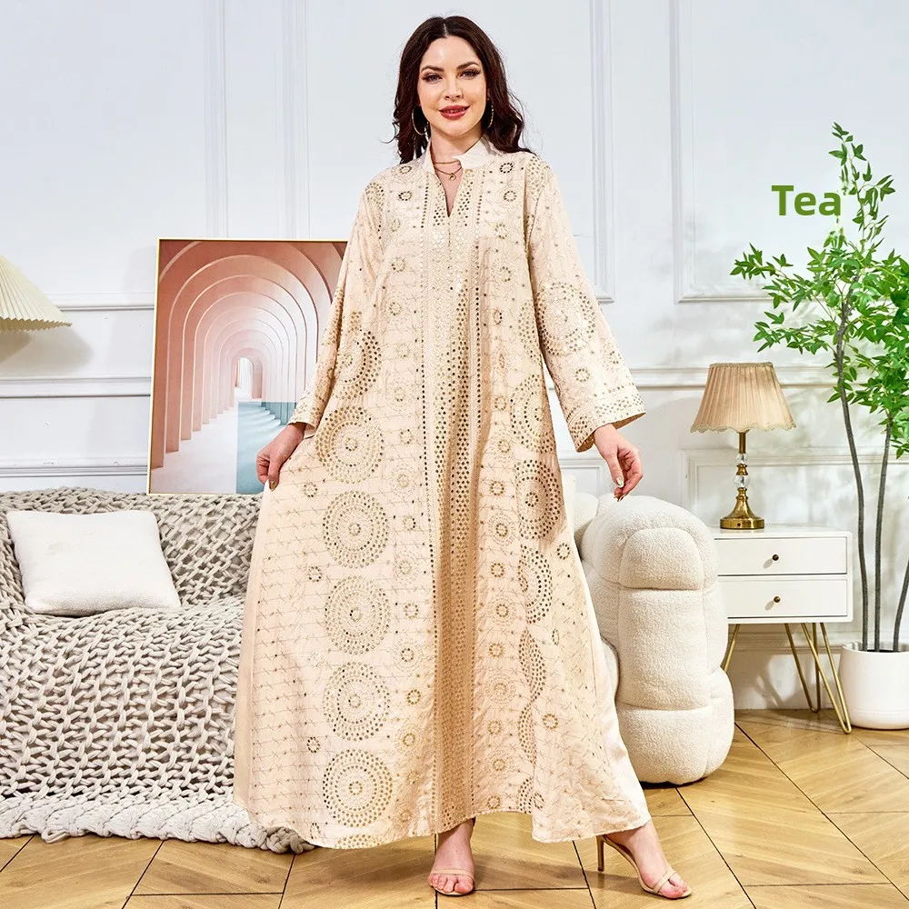 Dubai Women's Clothing Factory's Elegant Sequin Evening Long Polyester Robe Abaya Breathable for Spring Autumn Direct Middle