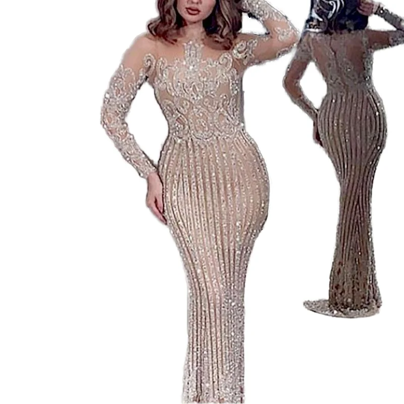 2024 Spring Summer Party Clothing Elegant Gold Sequin Embellished Cross-Border Satin Material Floor-Length Ball Gown Natural