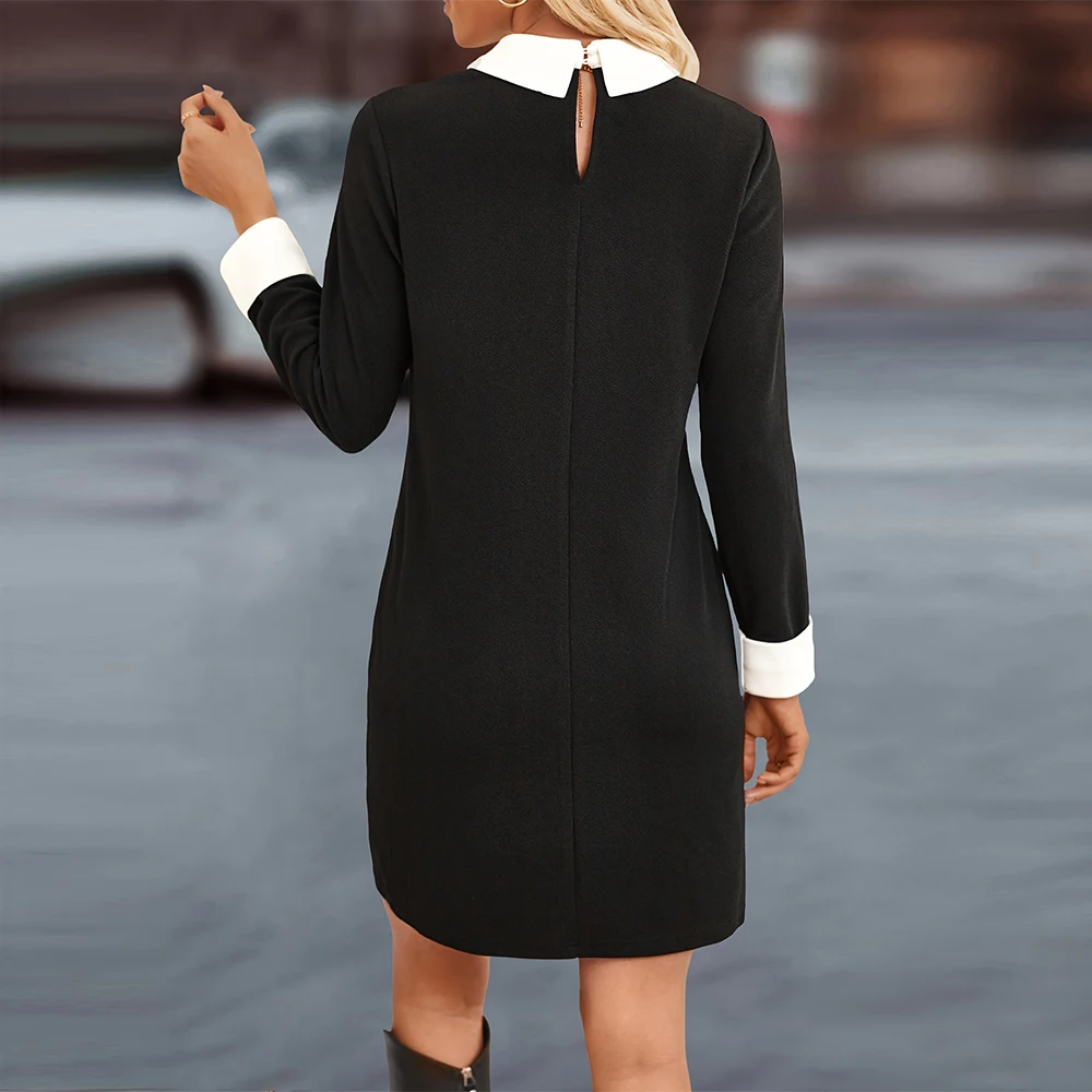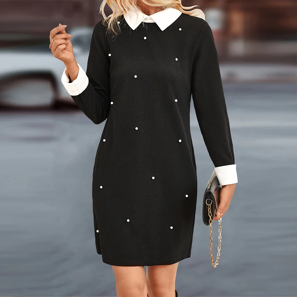 Customizable Office Ladies Dress New Patchwork Beaded Hip Skirt Color Contrast Button Decoration Temperament Career Dress