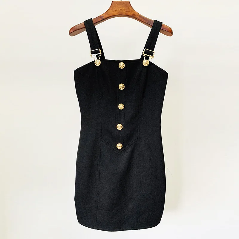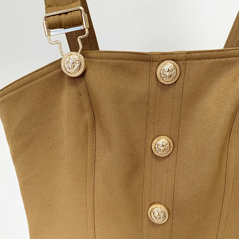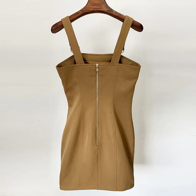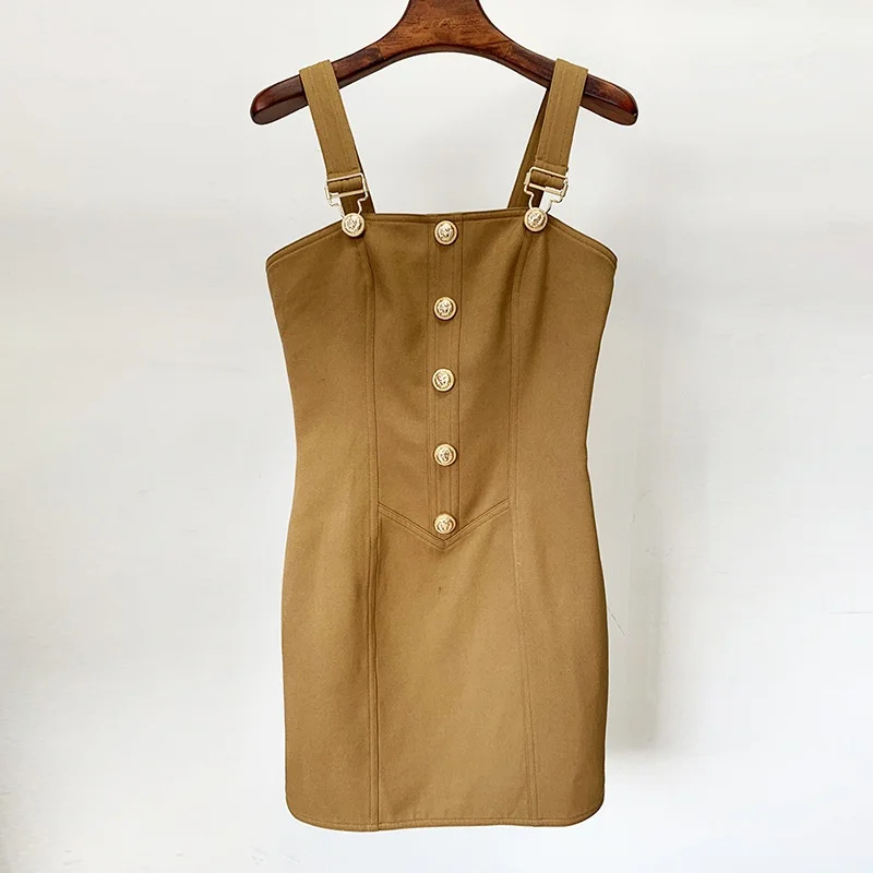 2025 Summer Casual Dress Sexy Single Breasted Slim Fit with Lion Head Metal Button OEM Foreign Trade Solid Pattern Plain Dyed