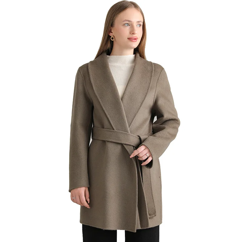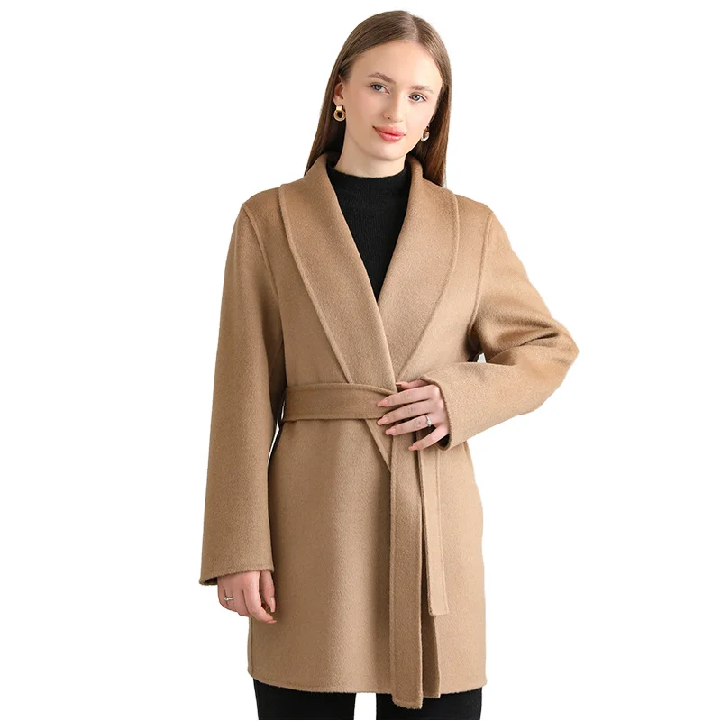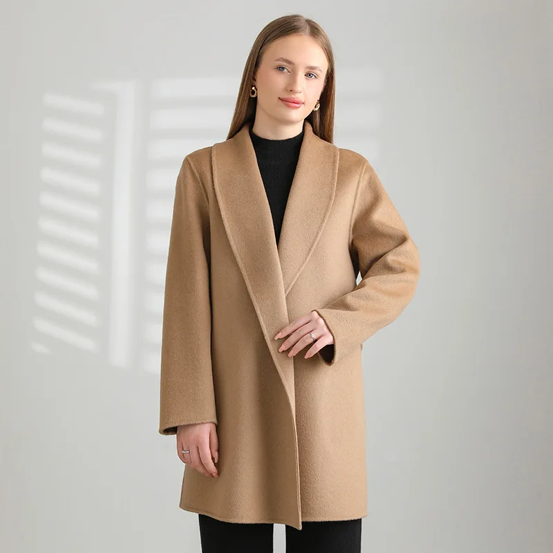 Merino Wool Woolen Double-sided Mid Length Casual Coat Autumn Winter Business Solid Color 100% Wool Wool Liner Women