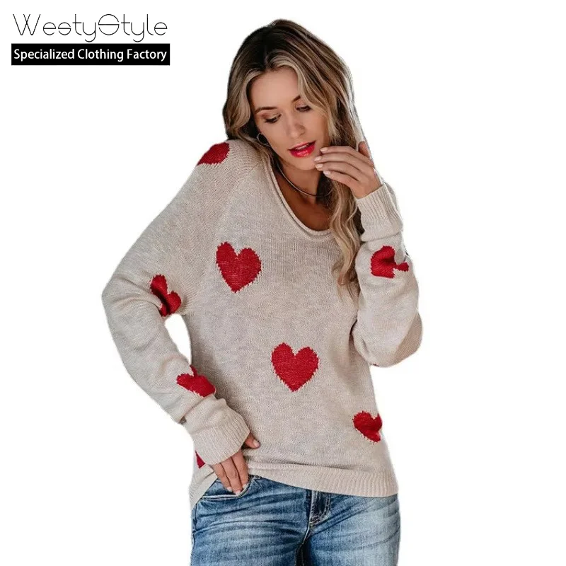 2026 Autumn Winter Korean Women's Acrylic Anti-Pilling V-neck Long-Sleeved Knitted Pullover Front New Valentine's Day WestyStyle