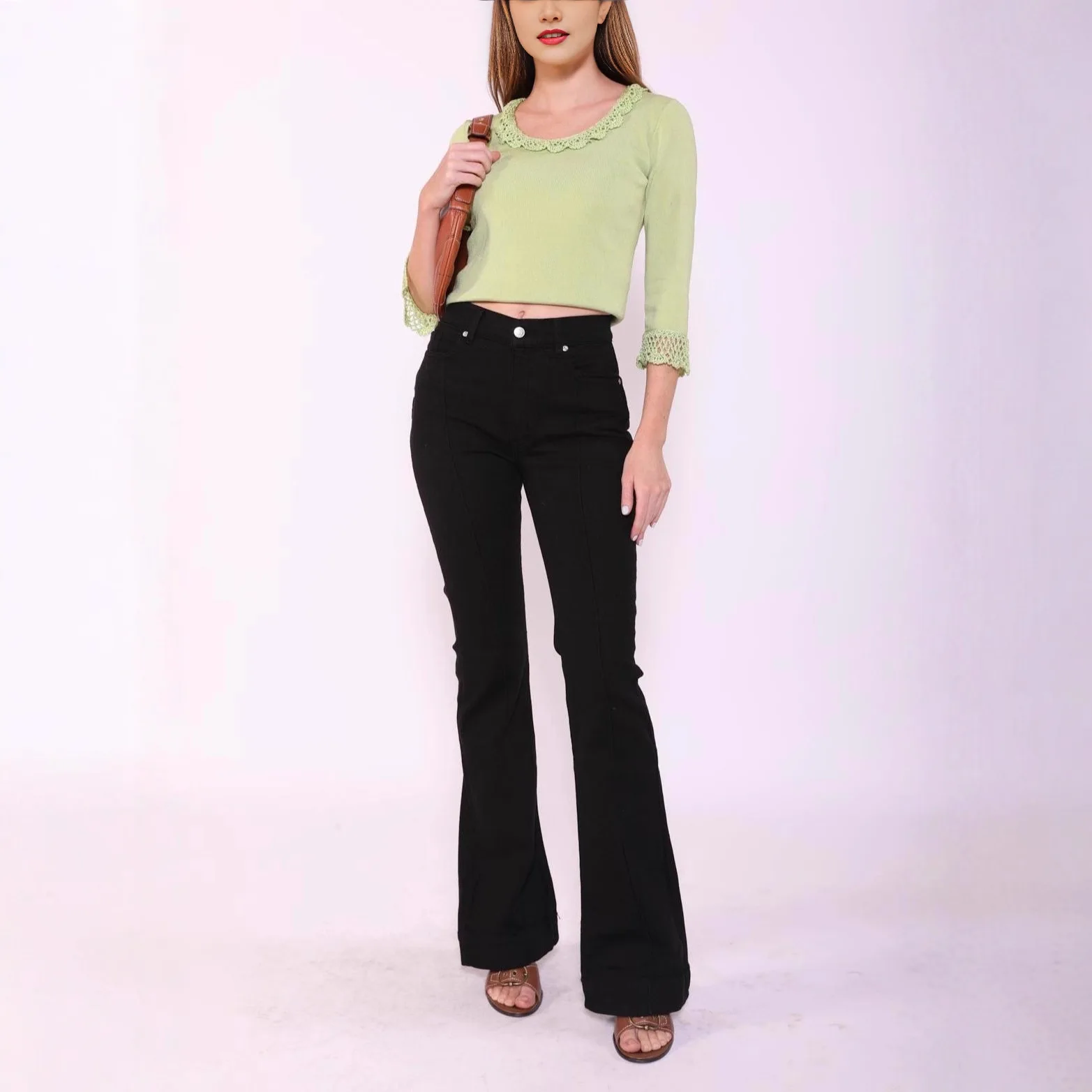 2026 New Cross-Border American Style Boot Cut Denim Women Mid Waist Regular Fit Vintage Quick Dry Nylon/Cotton Medium Wash Jeans