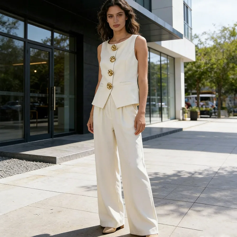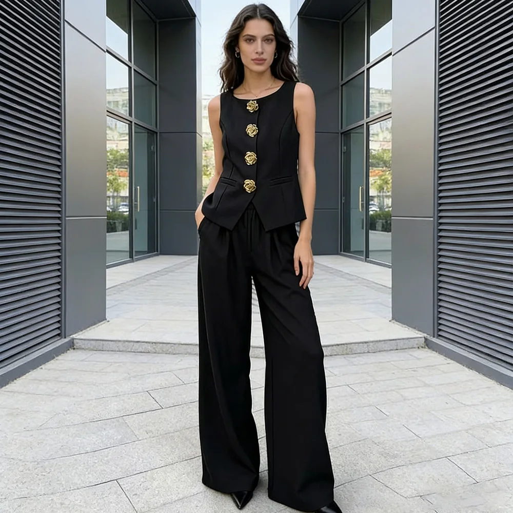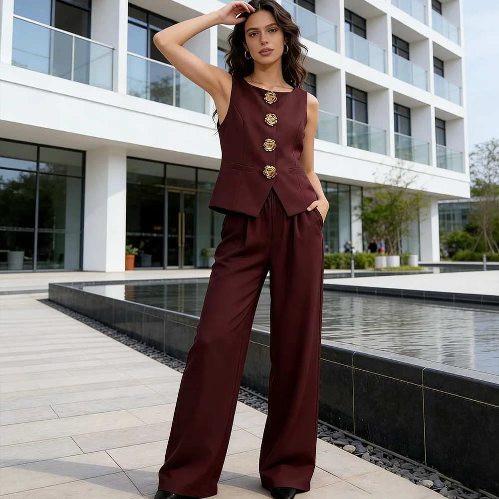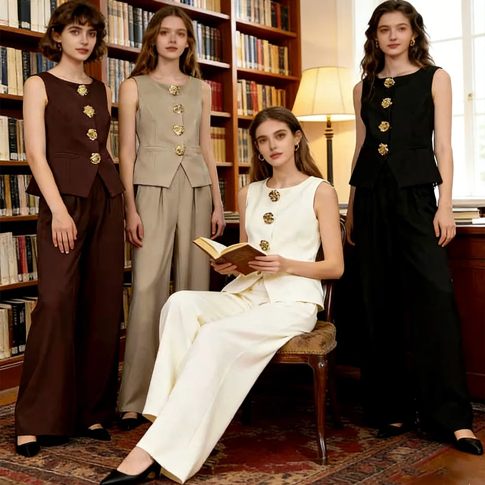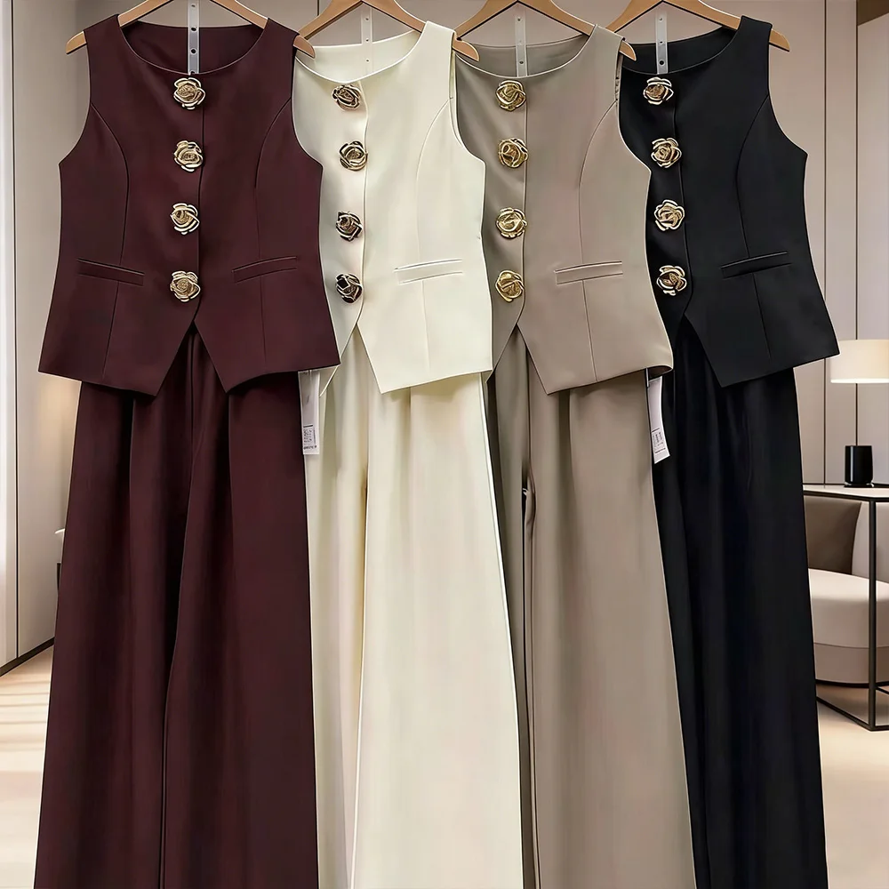 V-neck design sense vest and high-waist suit pants women's casual wear 2-piece set Sehe fashion