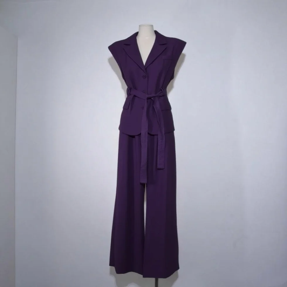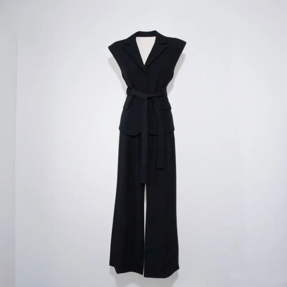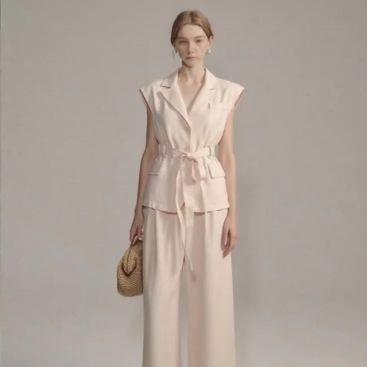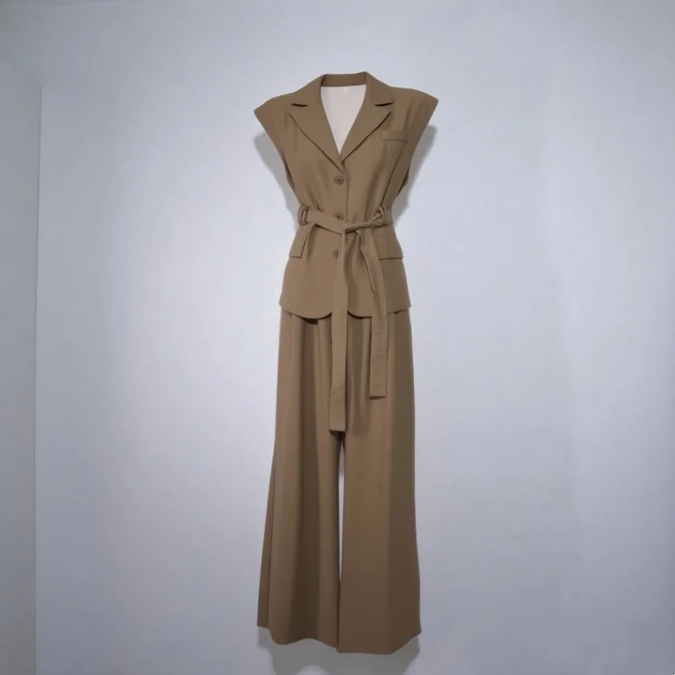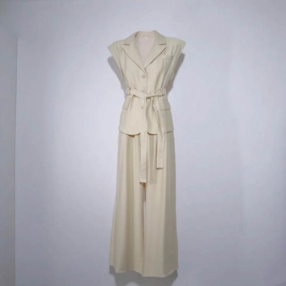 Fashion Casual Suit - Sleeveless Belted Cardigan Casual Suit