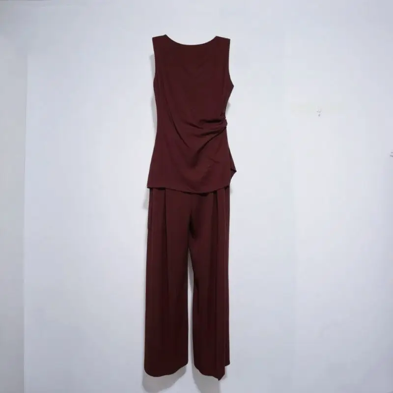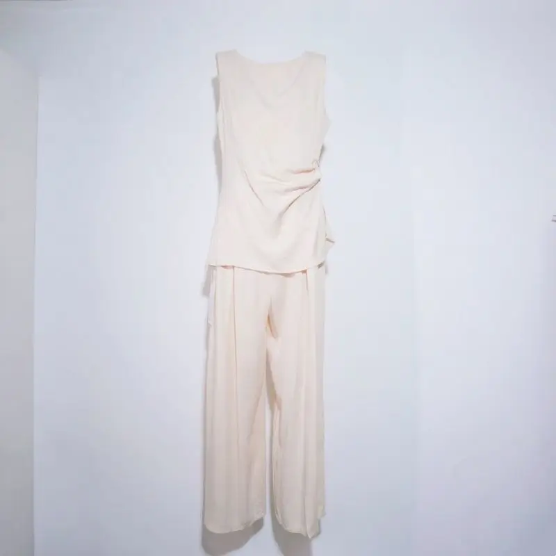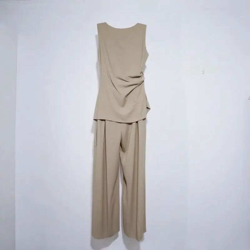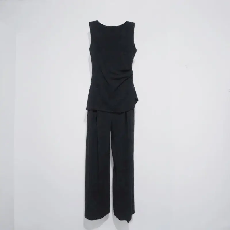 Summer Cool Set - Sleeveless Pleated Design Top and Wide-leg Pants - Stylish Two-piece Set