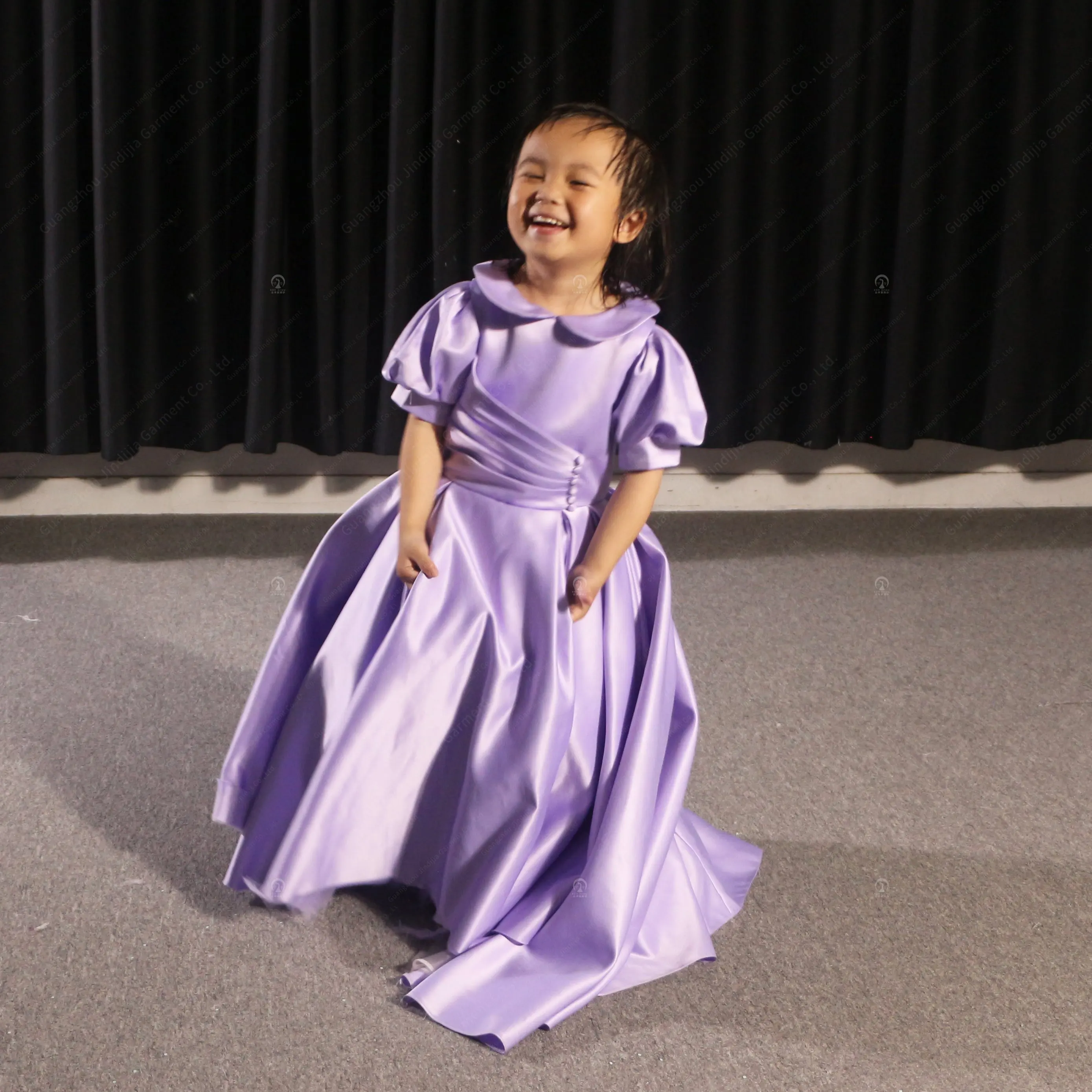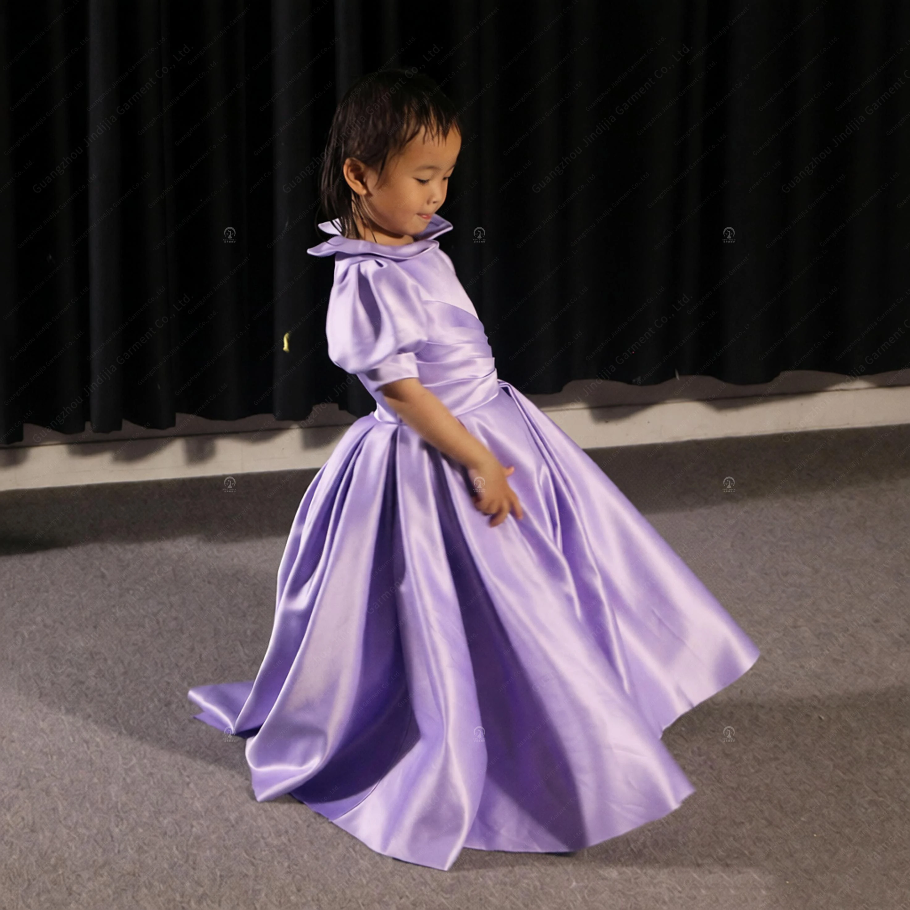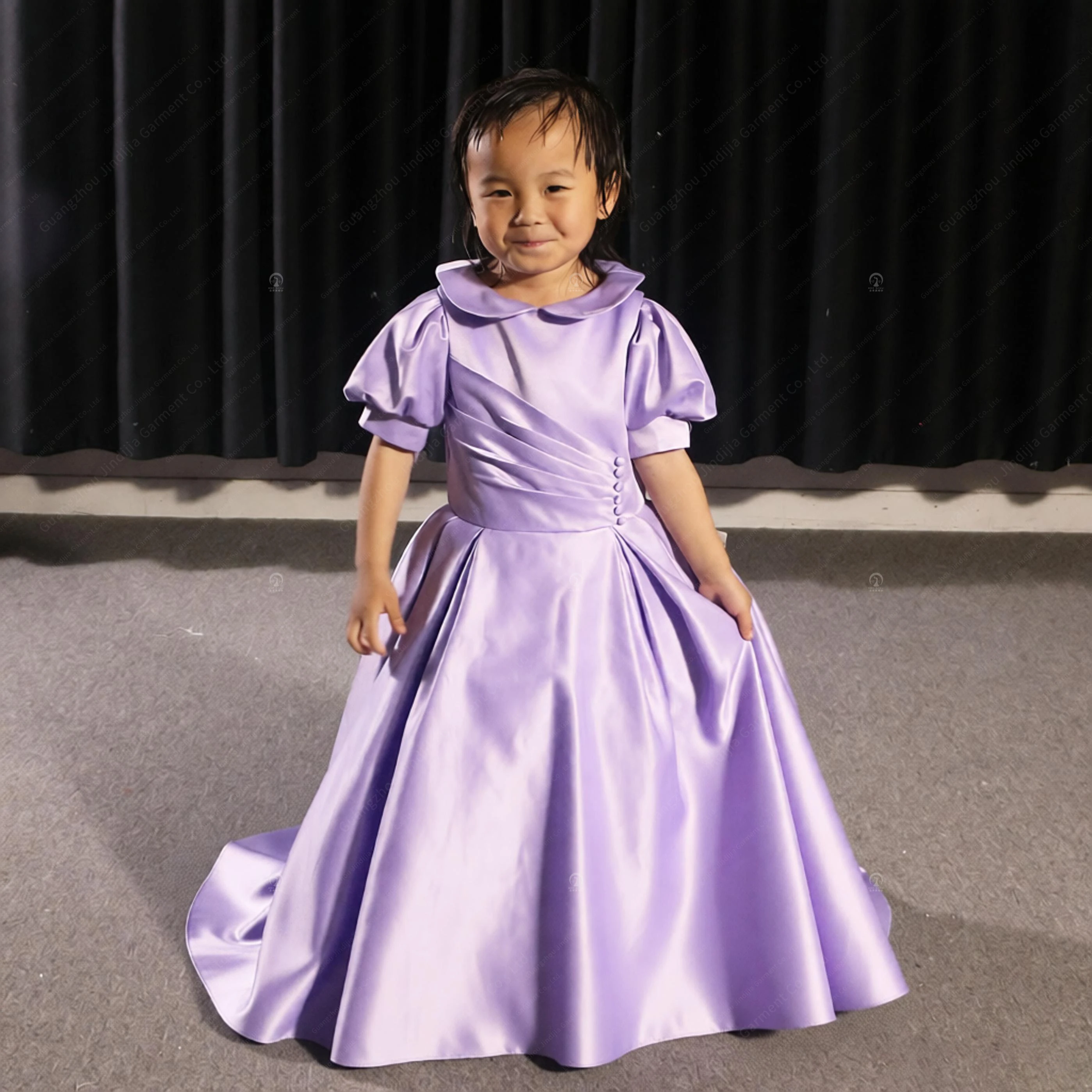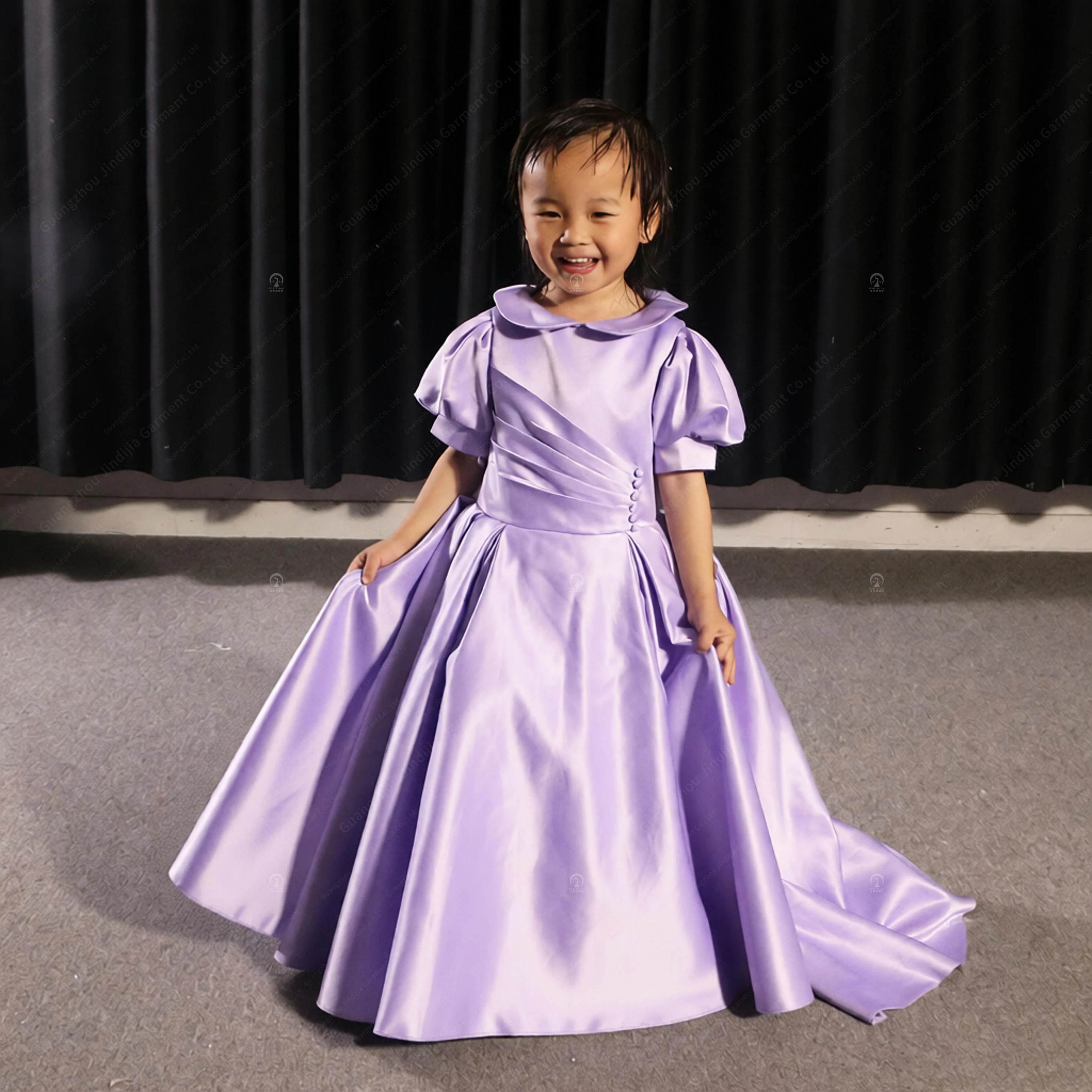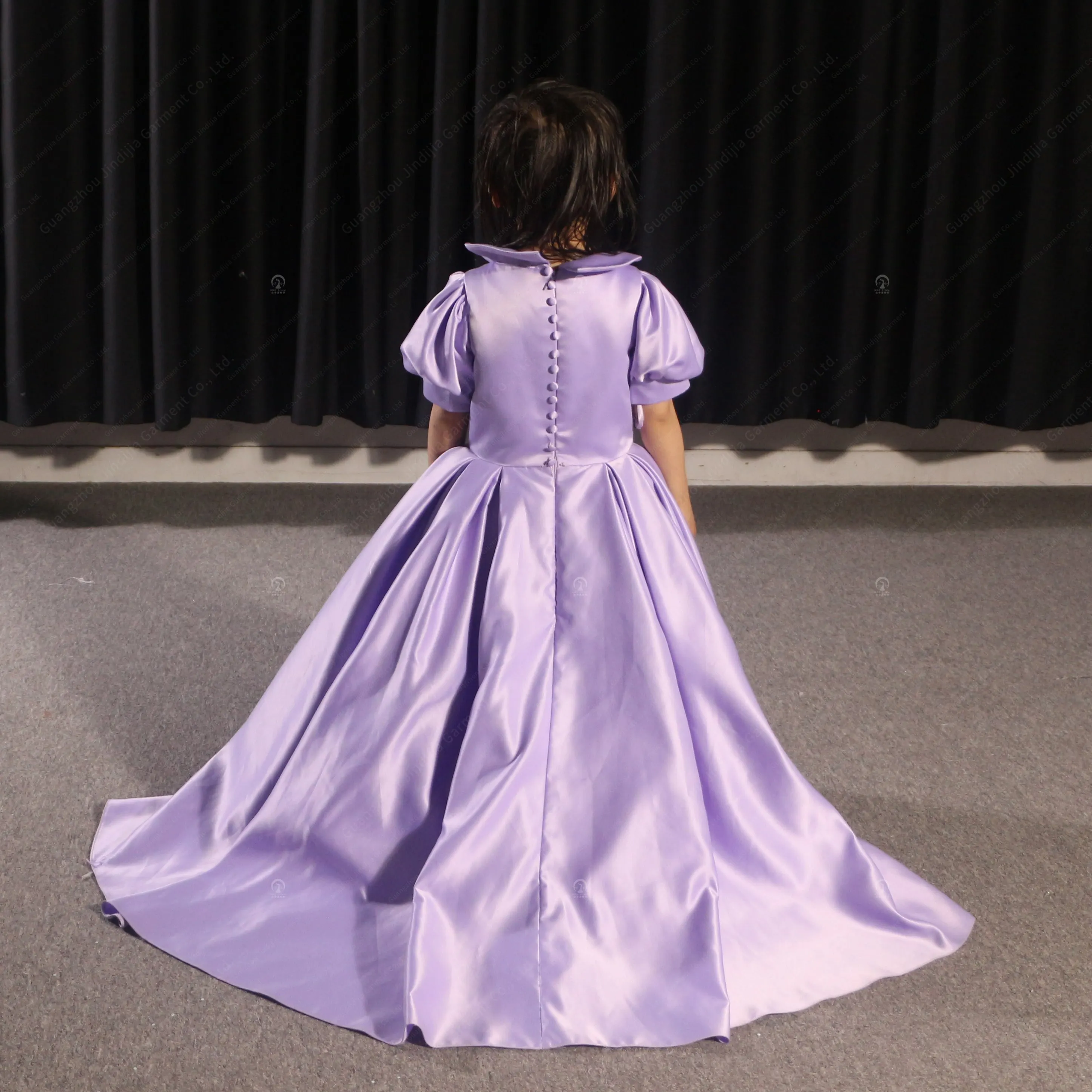 Cute A-Line Dress Short Front Long Back Asymmetric Chiffon Short Party Flower Girl Dress With Purple Flower Girls' Party Dresses
