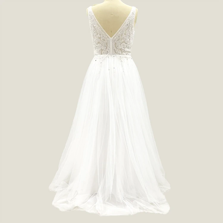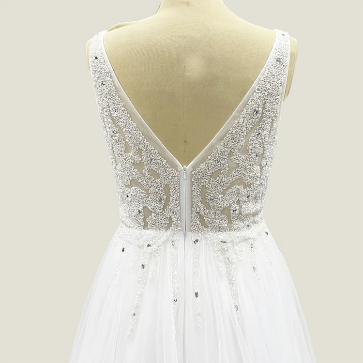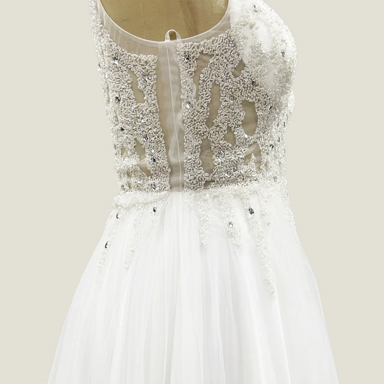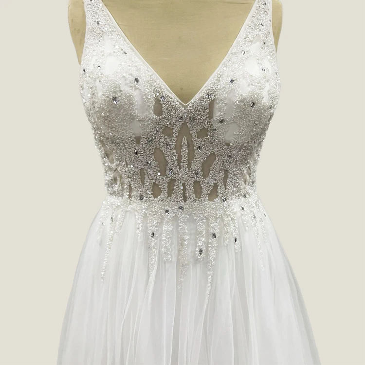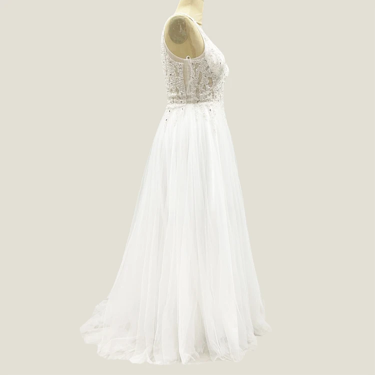 White Sequin Lace Sleeveless Vneck Beaded Petticoat Dresses France Wedding Gowns Plus Size Muslim Lace Bridal Gown Wedding Dress