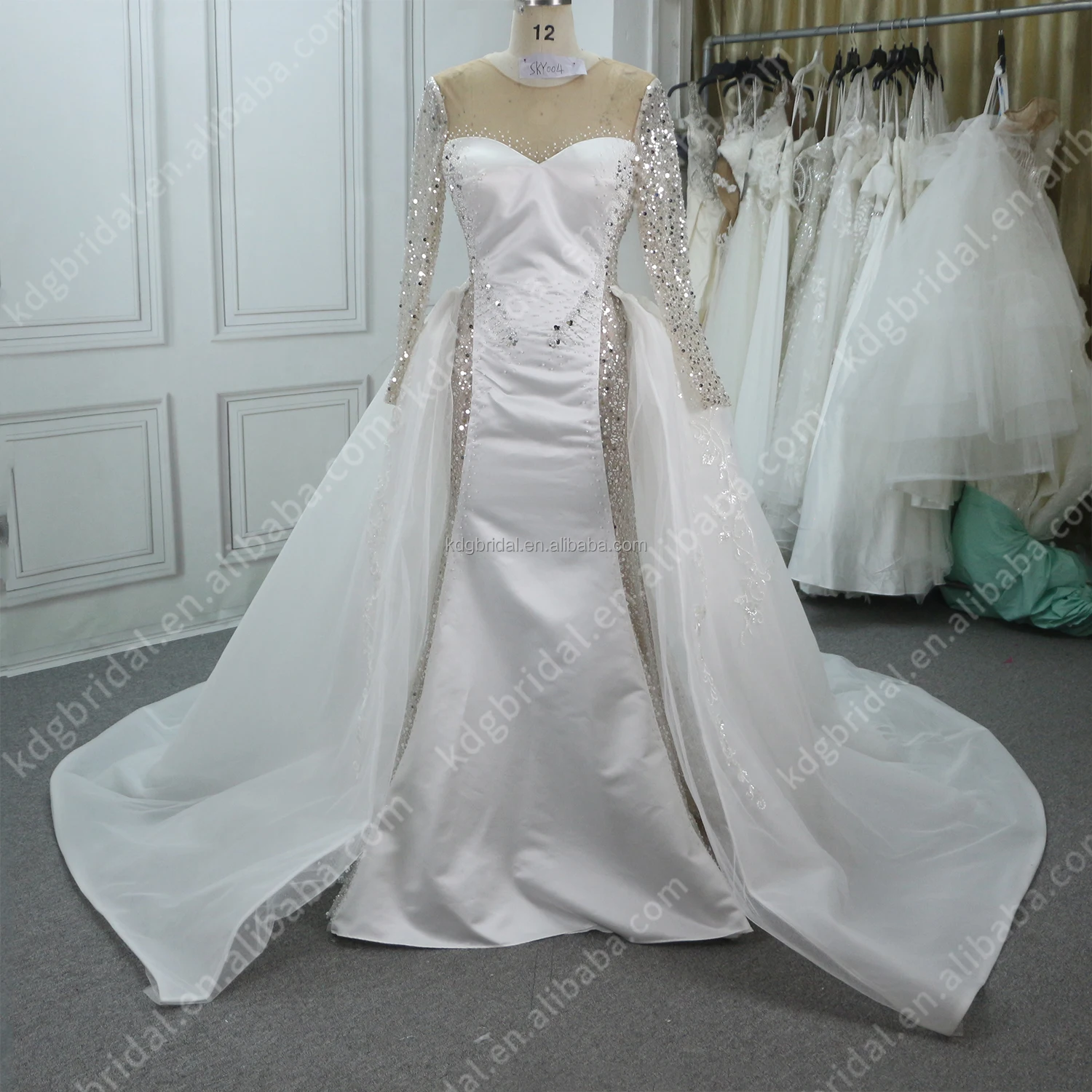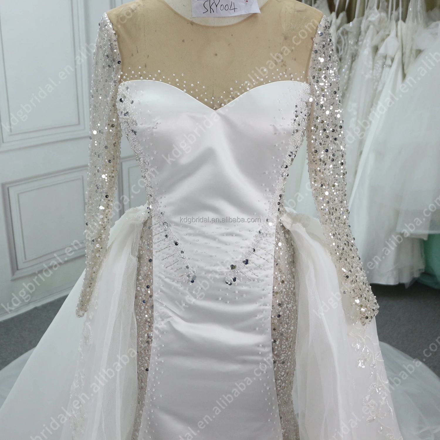 KDG Factory New Design Long Sleeve Sweet Sexy Bride Princess Chapel Train Elegant Gowns Women Luxury 2 in 1 Bridal Wedding Dress