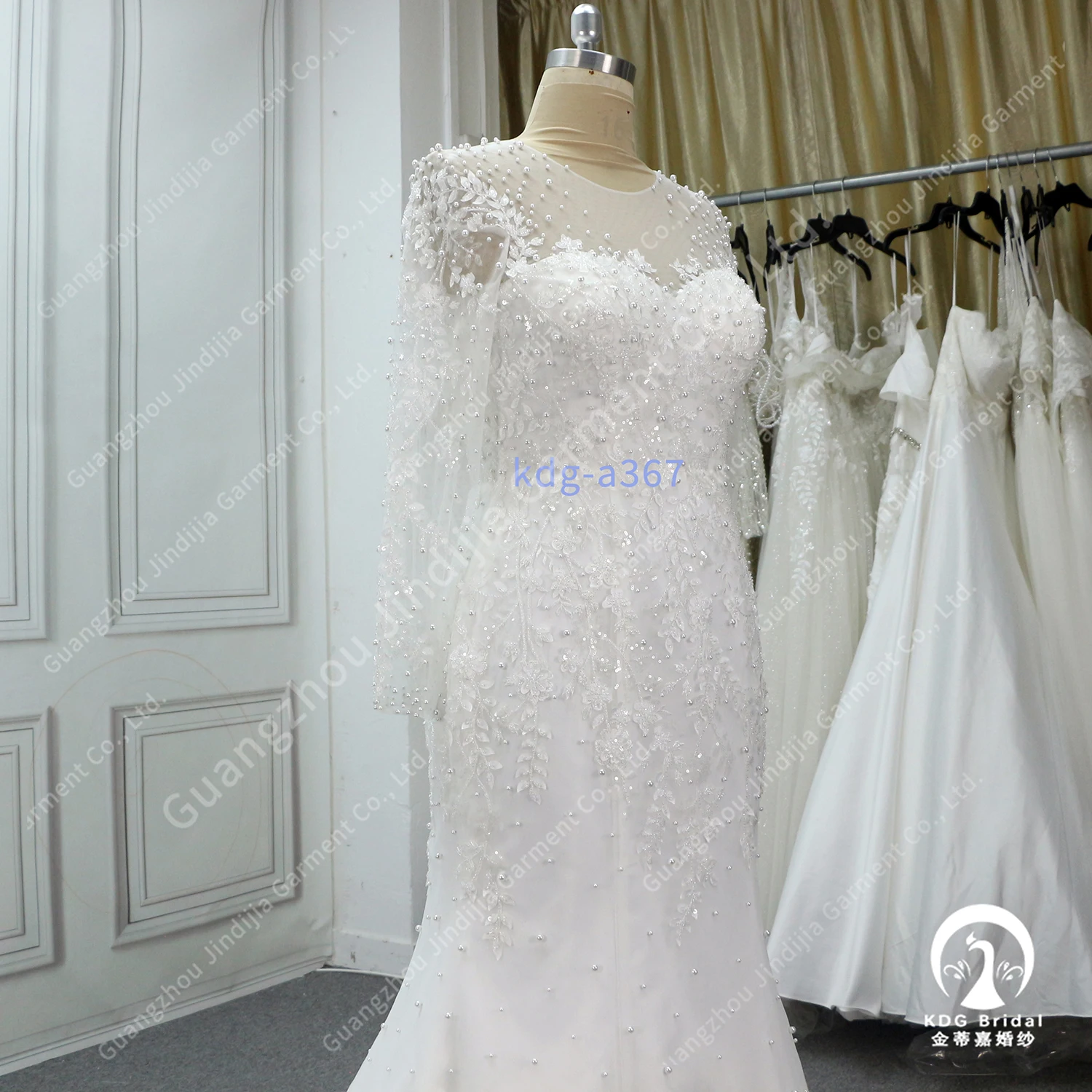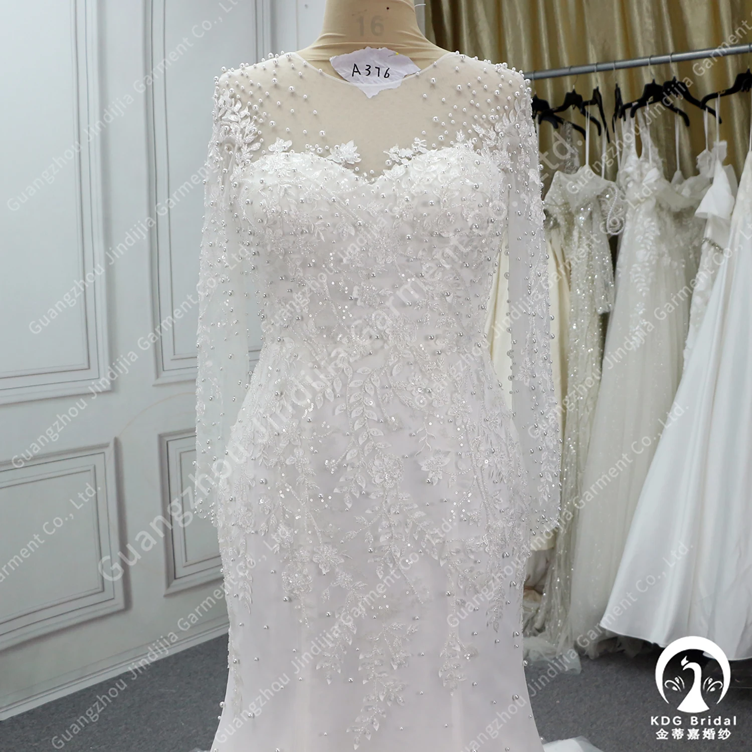 Beading Full Women Lace Elegant Gowns Custom Plus Size Made Luxury Pearl Lace Long Sleeves Mermaid With Bride Sexy Wedding Dress