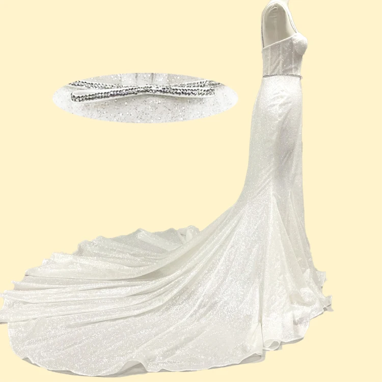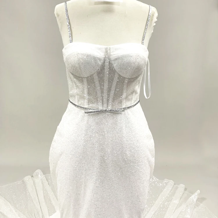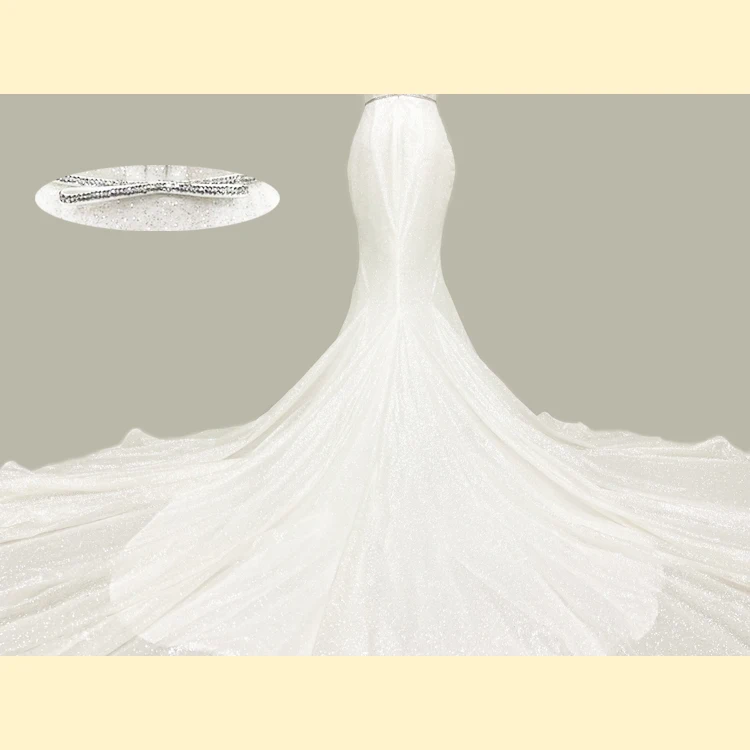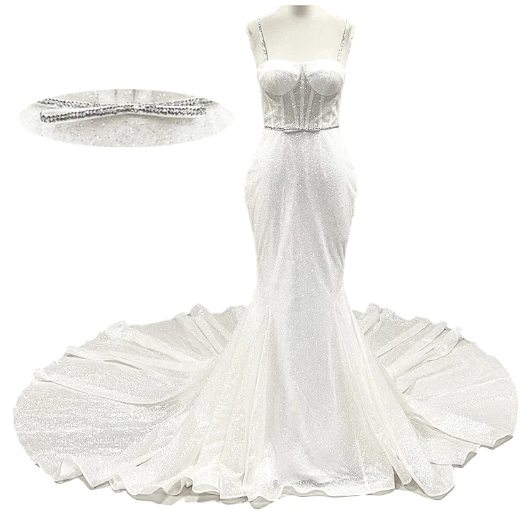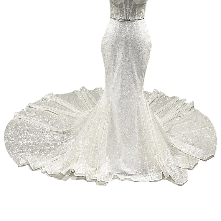 Backless White Beaded Sequins Shining Gown Mermaid Crysta Detachable Long Trail Sexy Silver for Black Women Sexy Wedding Dress