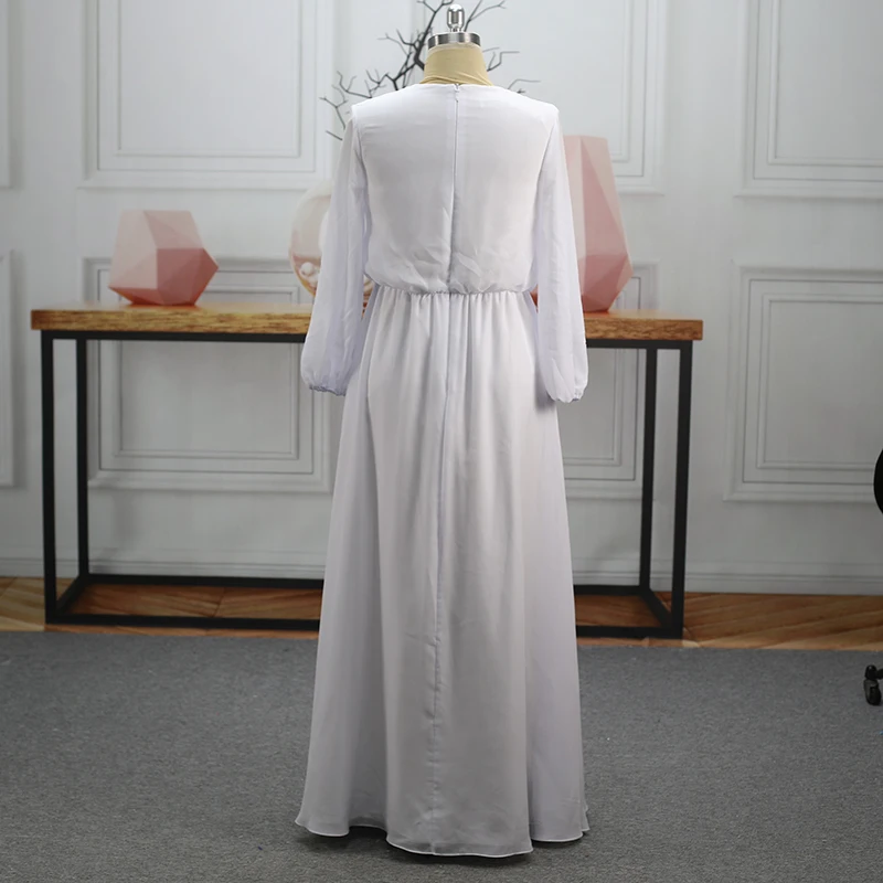ZYHT 73907 Custom Design Long Sleeve High Neck Fashion Pleated Crystal Beads Ruched Knot High Slit Sexy Luxury Evening Dress