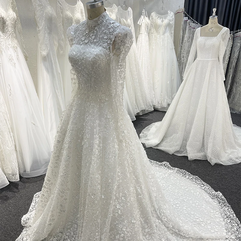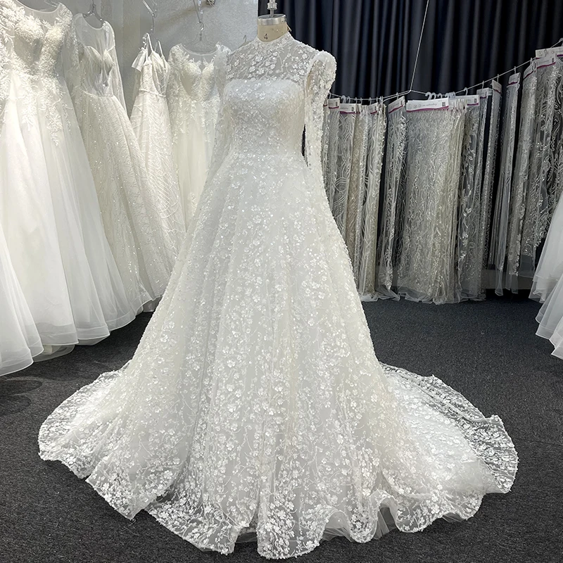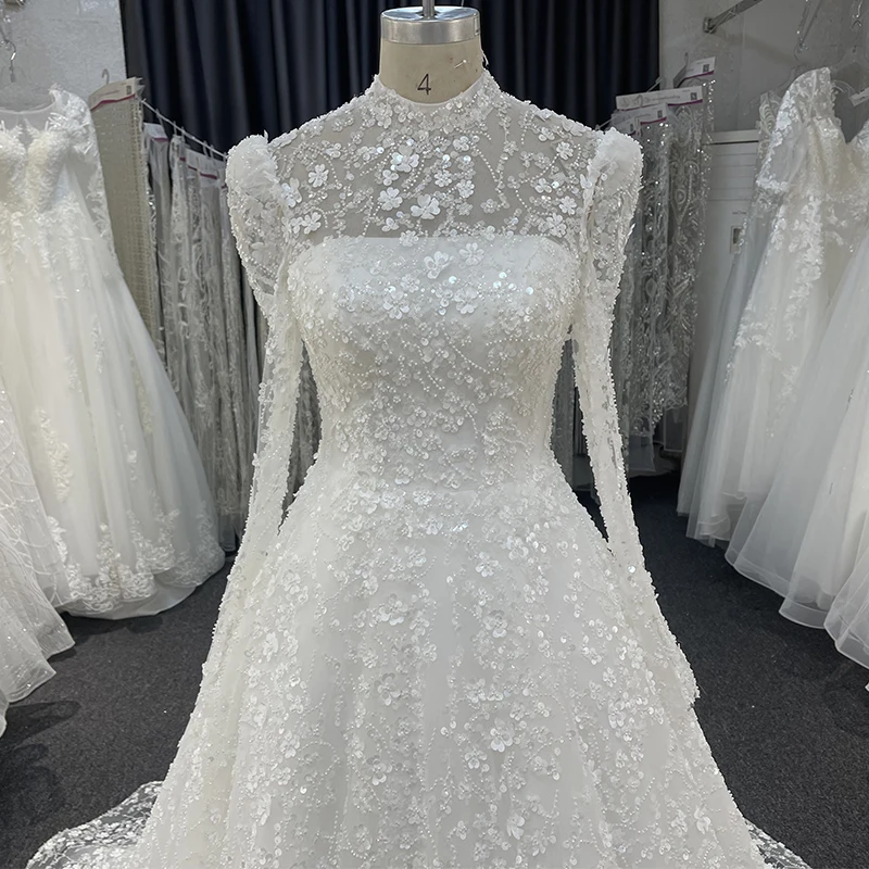 Long Sleeves Illusion Ball Suits Gown Elegant Classy 2023 Luxury Beaded Bridal Lace With Beads and Sequins O-neck Wedding Dress