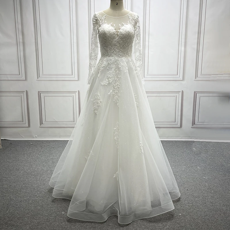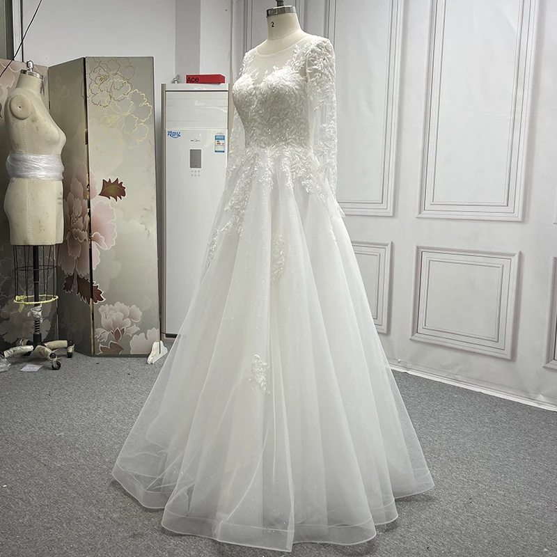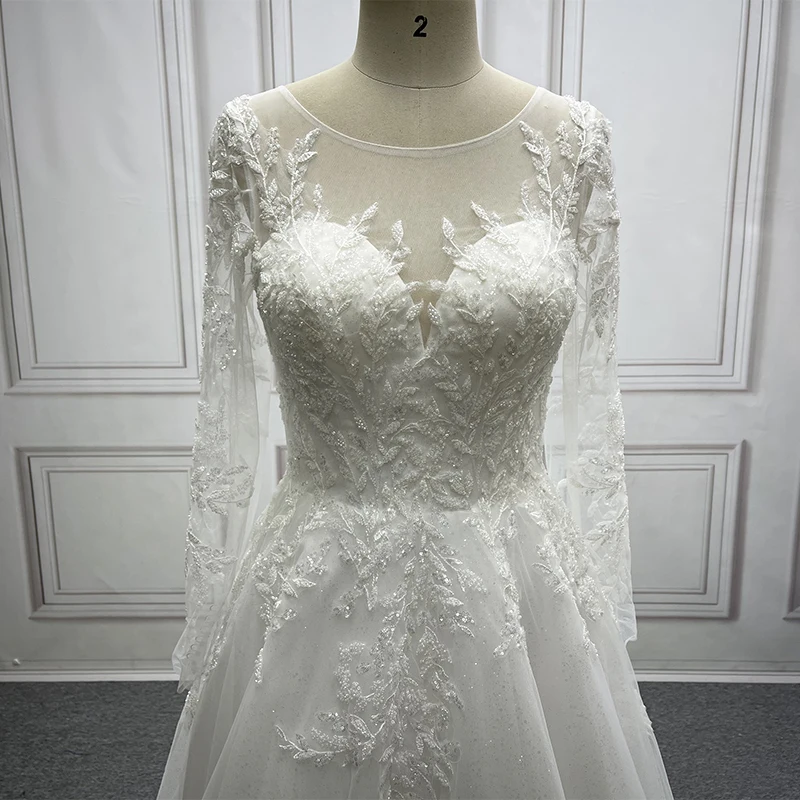 KDG Elegant With Big Train Long Sleeve Luxury Wedding Dress Crowns Tulle Dress Bridal Boho Chapel Train Wedding Dresses Gowns