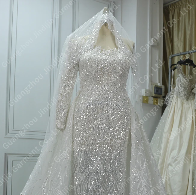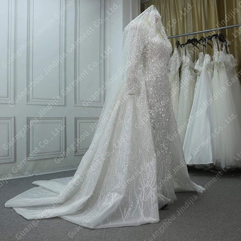 KDG Hot Selling Lace Long Sleeve Mermaid Fashion Wedding Dress 2024 New Design Detachable Fishtail Bridal 2 in 1 Wedding Dresses