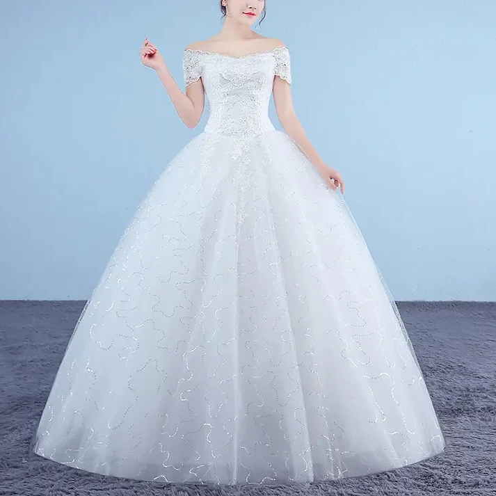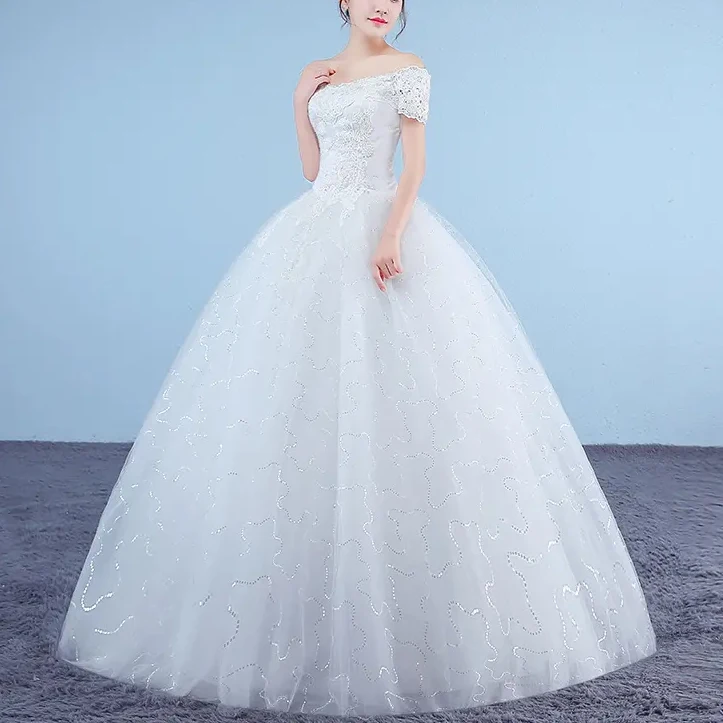 KDG New Elegant Women Most Loved Hight Quality White Wedding Dress Lace Sequined Bridal Gown Bride Dress