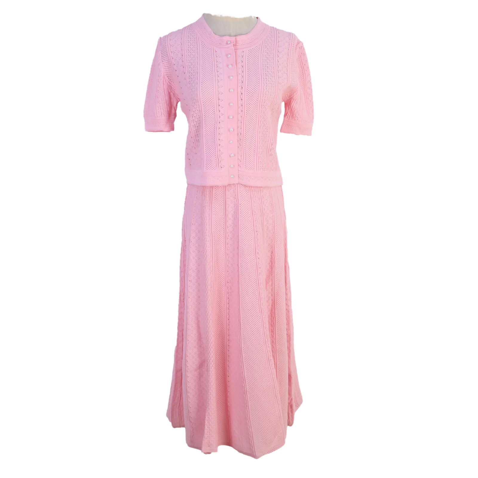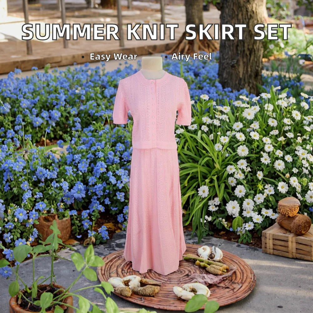 4683 Wholesale Summer Casual Thin Breasted Solid Color Breathable Knitwear Neck Short Sleeve Knitted Shirts Half Skirt Women