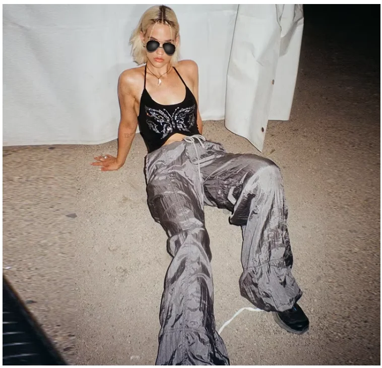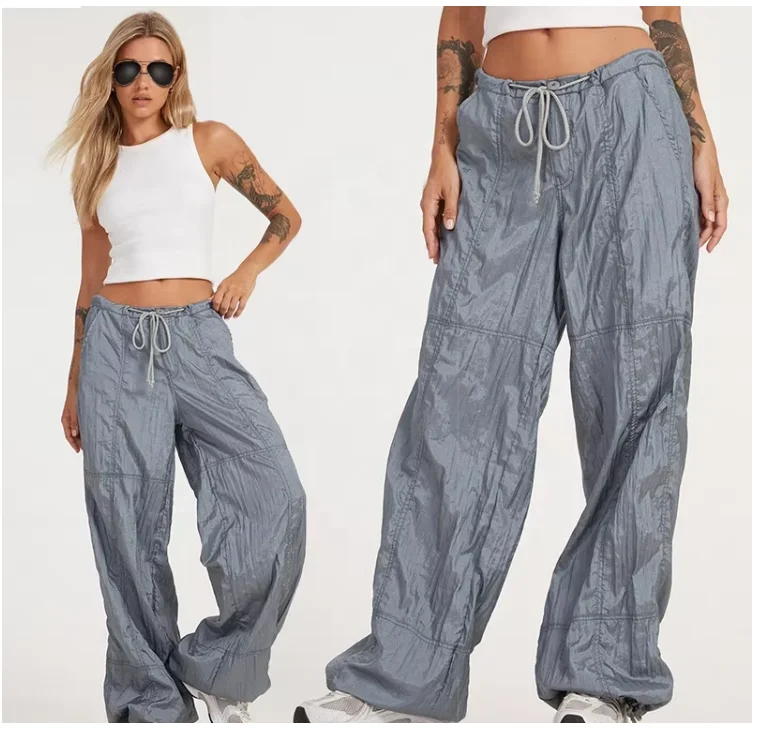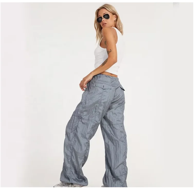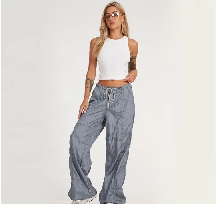 2414 Custom Logo Manufacturer Oem Cotton Plus Size Multiple Pockets Drawstring Vintage WoMen Parachute Cargo Pants
