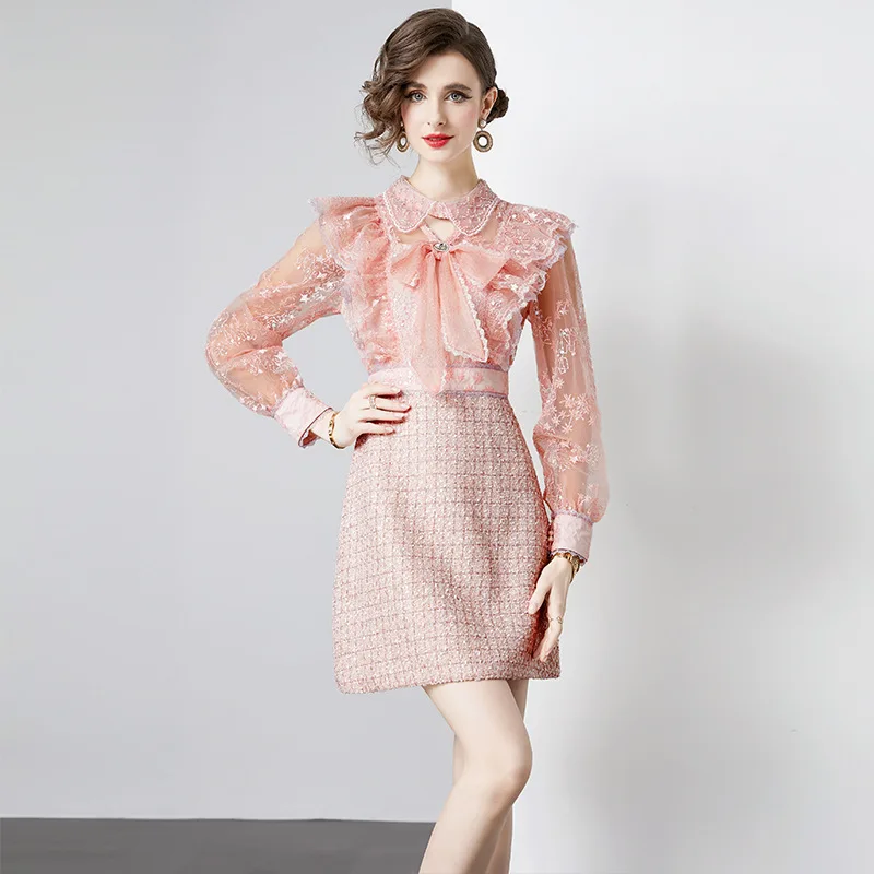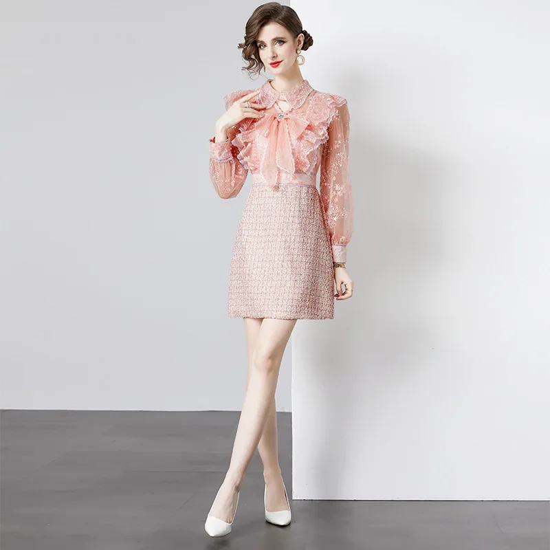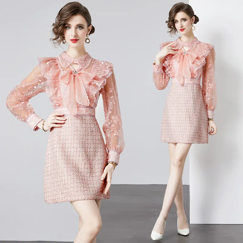 56 pink Lace Floral Print Sets Office Lady Wear Kids Casual Dress for Girls Girls Dresses 18 Yrs Casual Formal Ladies Dress Sexy