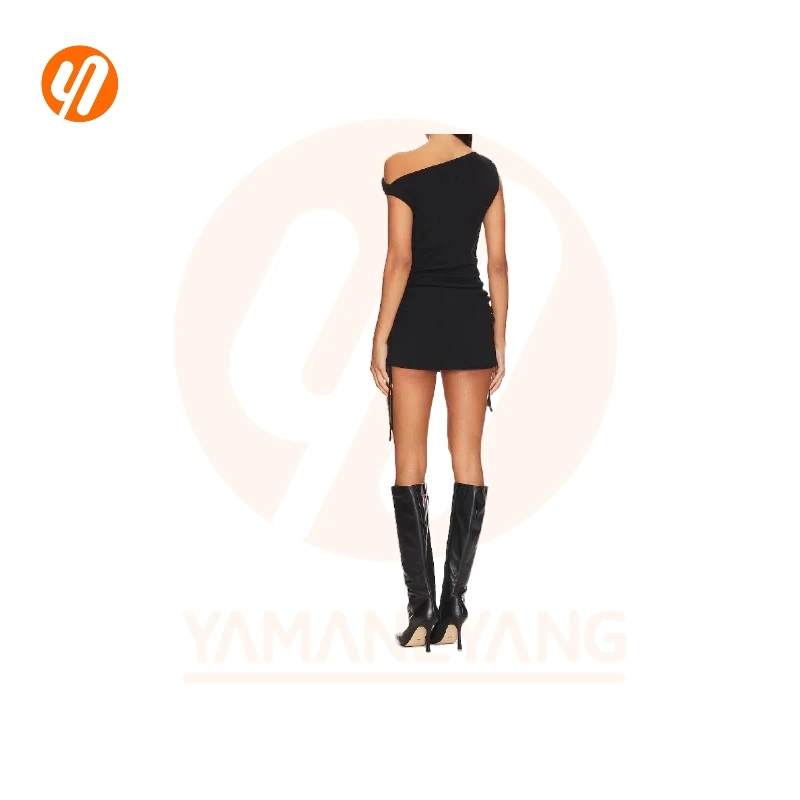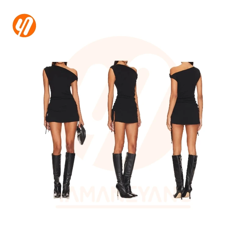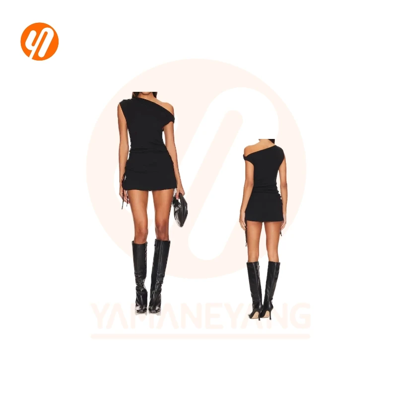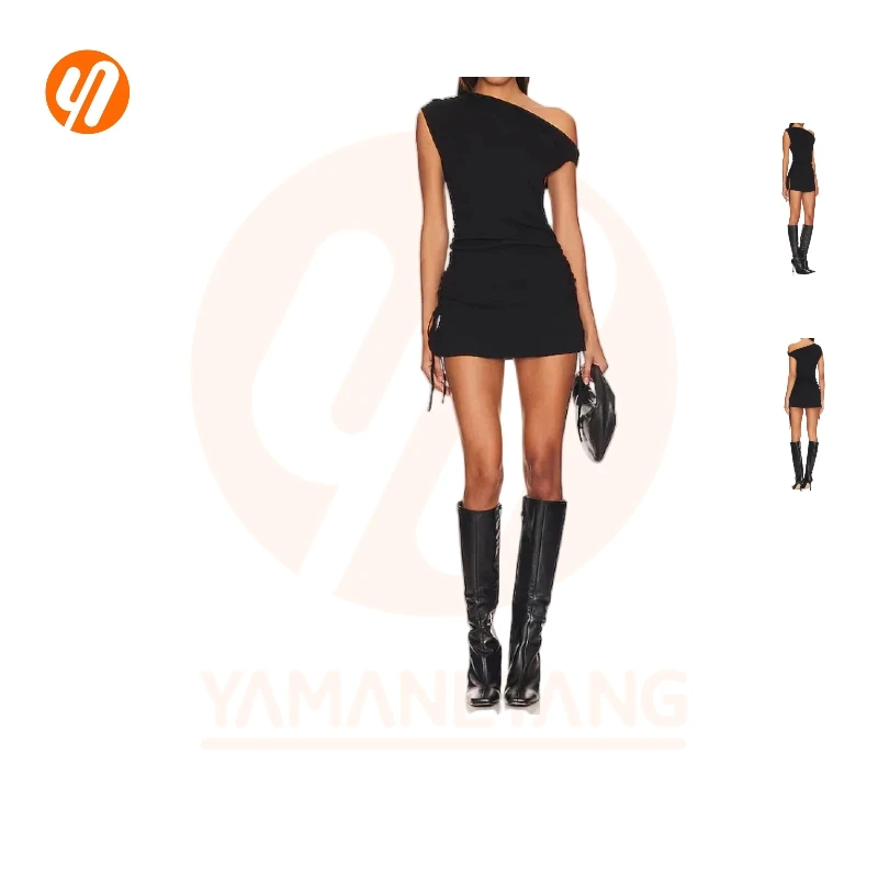 ZYHT 73849 European Wholesale Fashion Casual One Shoulder Ruched Maxi Dress Side Slit Pleated Long Sleeve Dresses for Women
