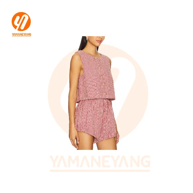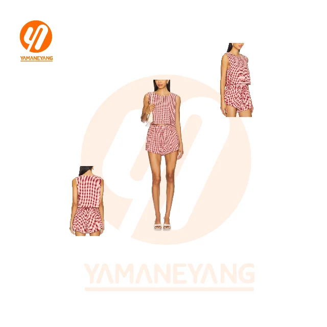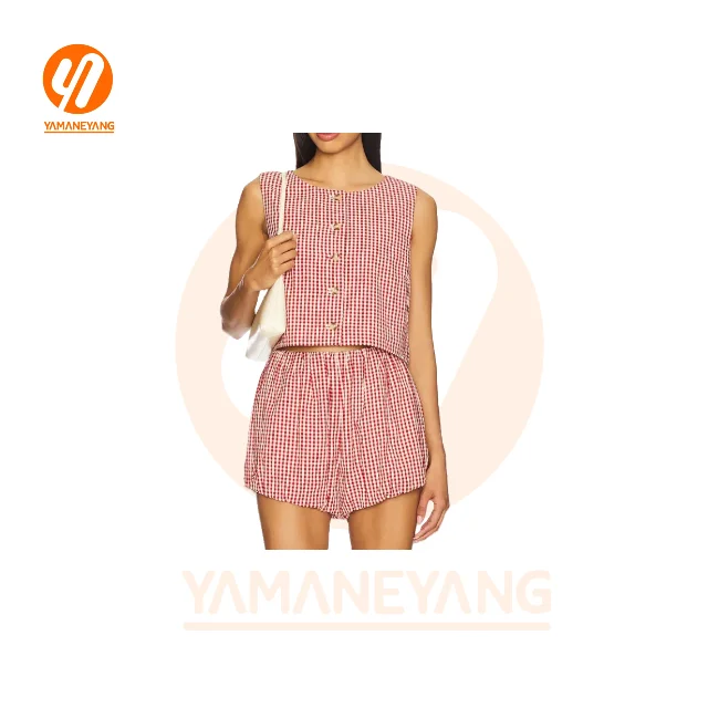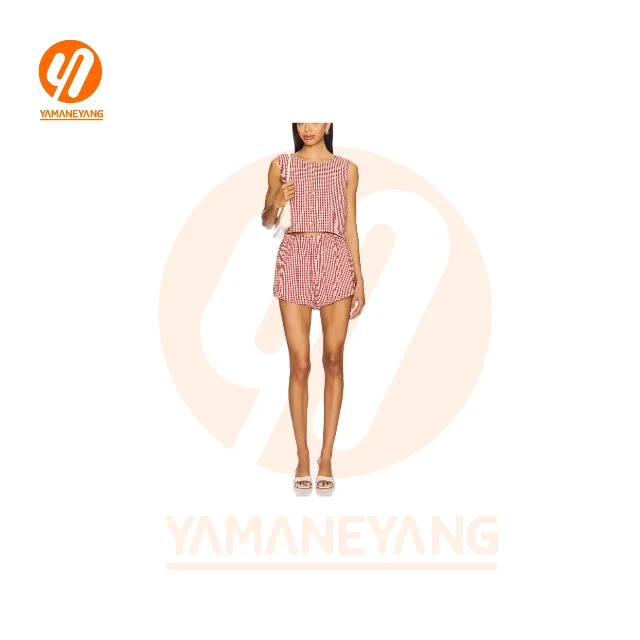 1962 Vintage Plaid Outfit Elegant Loose O Neck Puff Sleeve Front Tie-Up Blouse Tops + Shorts Women's High Waist Summer Vintage
