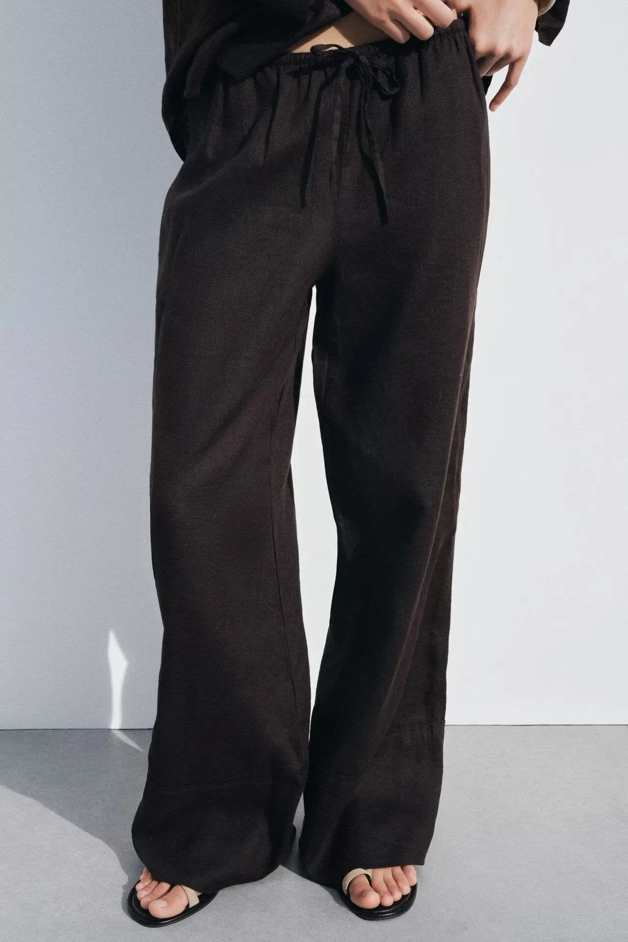 4016 Women's Clothing 2025 Summer New Casual Simple Versatile Linen Blended High Waist Wide Leg Pants 4786091 4786090