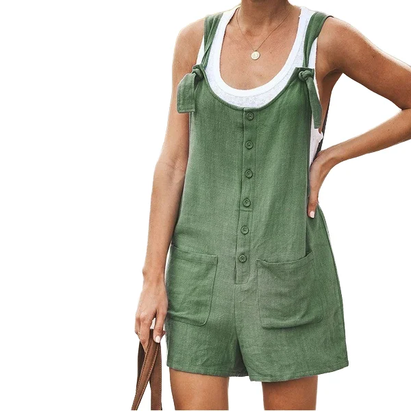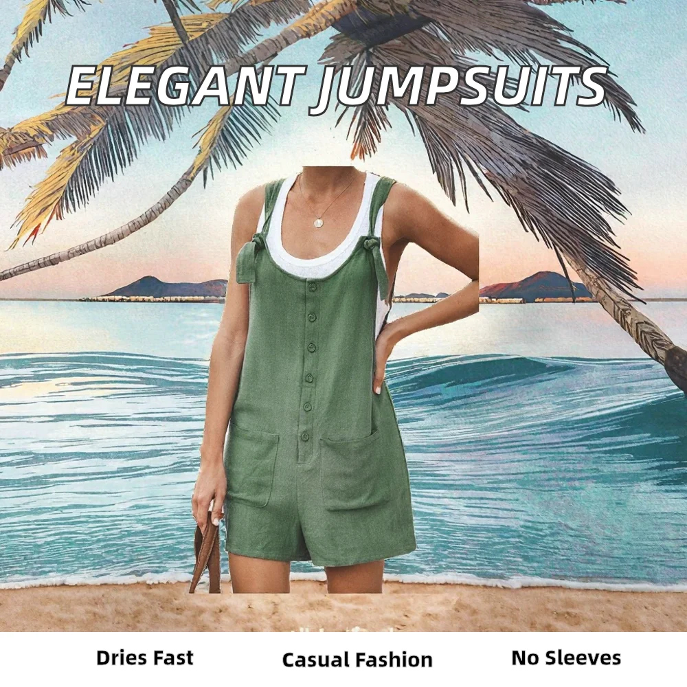 4646 Women's Elegant Vintage Short Wide Leg Pants Casual Sleeveless Overalls Padded Pockets Straps Solid Street Wear Jumpsuits