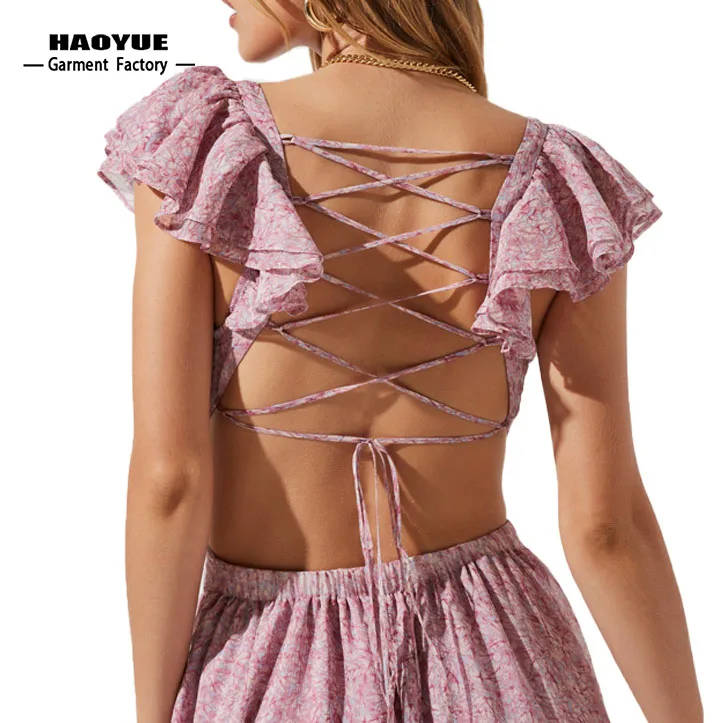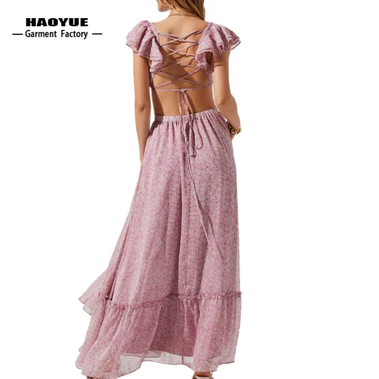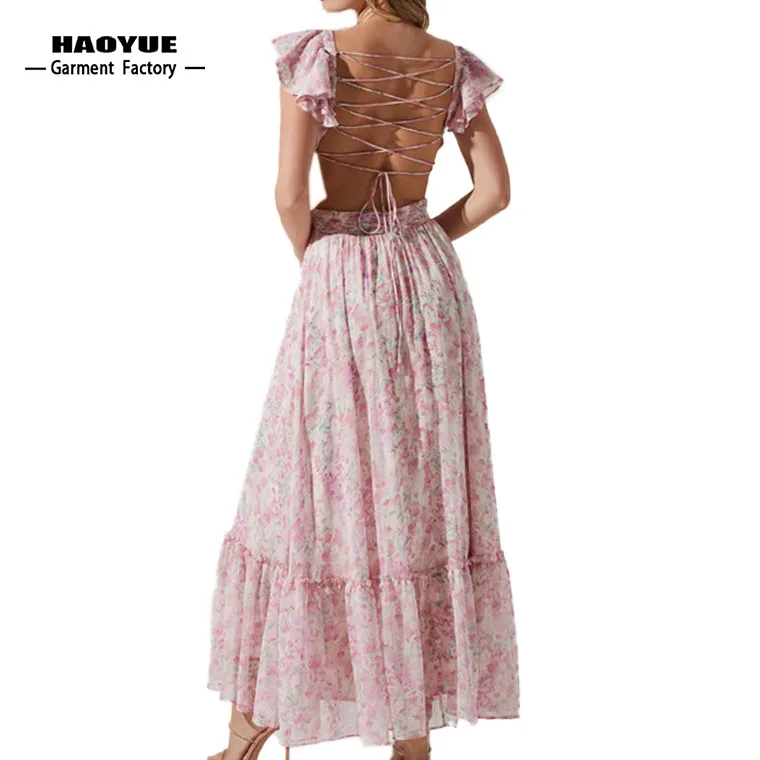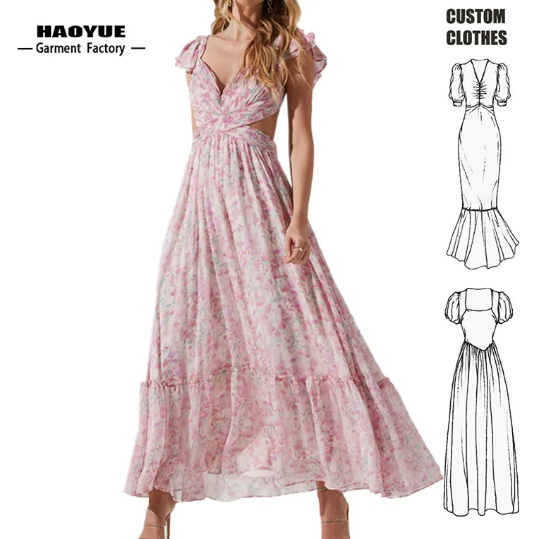 Clothing Manufacturer Custom Clothes Women Girls Casual Dresses Floral Maxi Boho Line Dress for Ladies