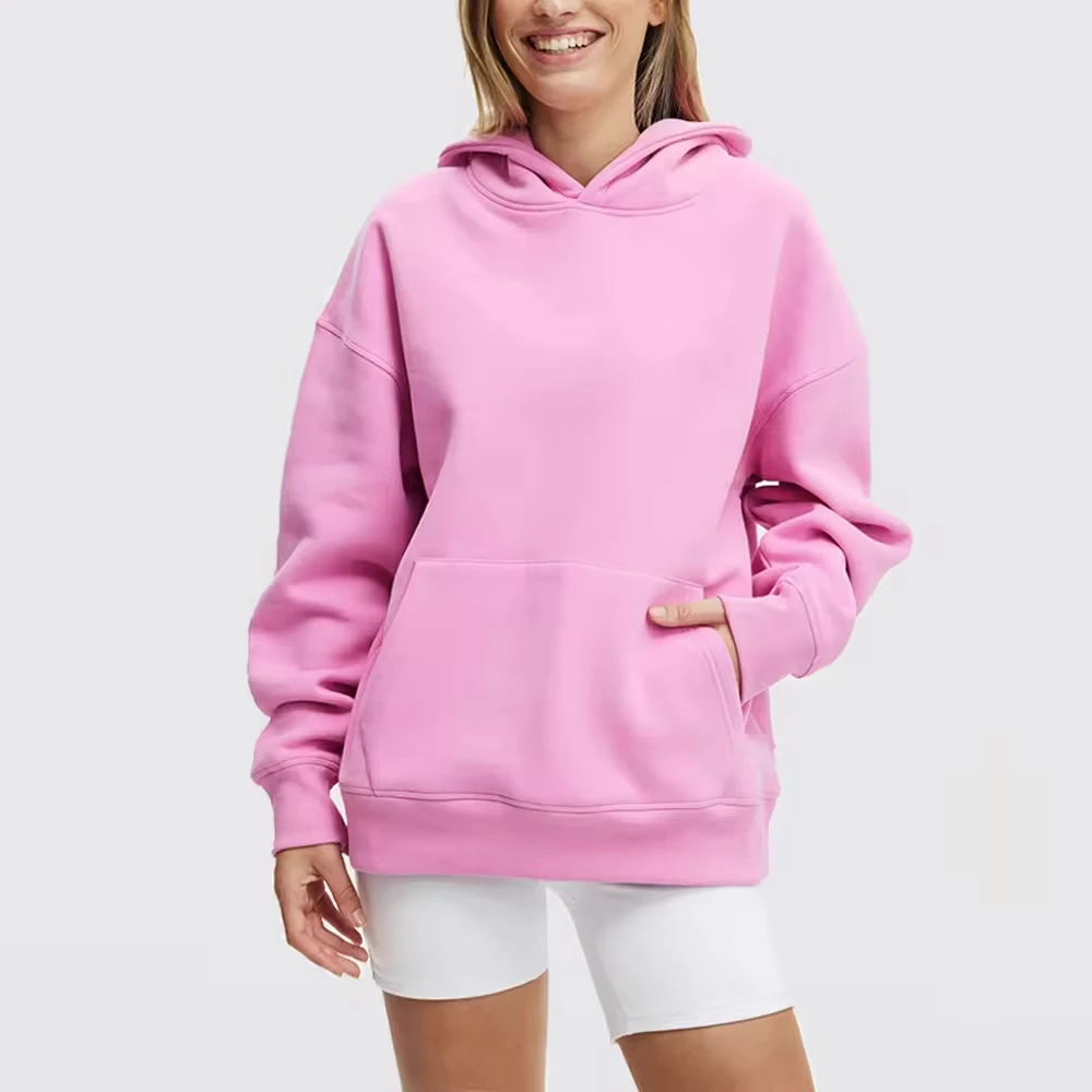 Women's Oversized Cozy Plush Full Coverage Hood Front Fleece Pocket Straight Hem Stretch Ribbed Cuffs Slouchy Dropped Hoodie