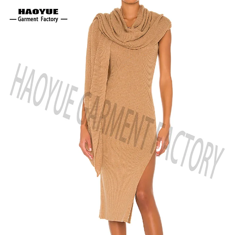 ZYHT 73849 European Wholesale Fashion Casual One Shoulder Ruched Maxi Dress Side Slit Pleated Long Sleeve Dresses for Women