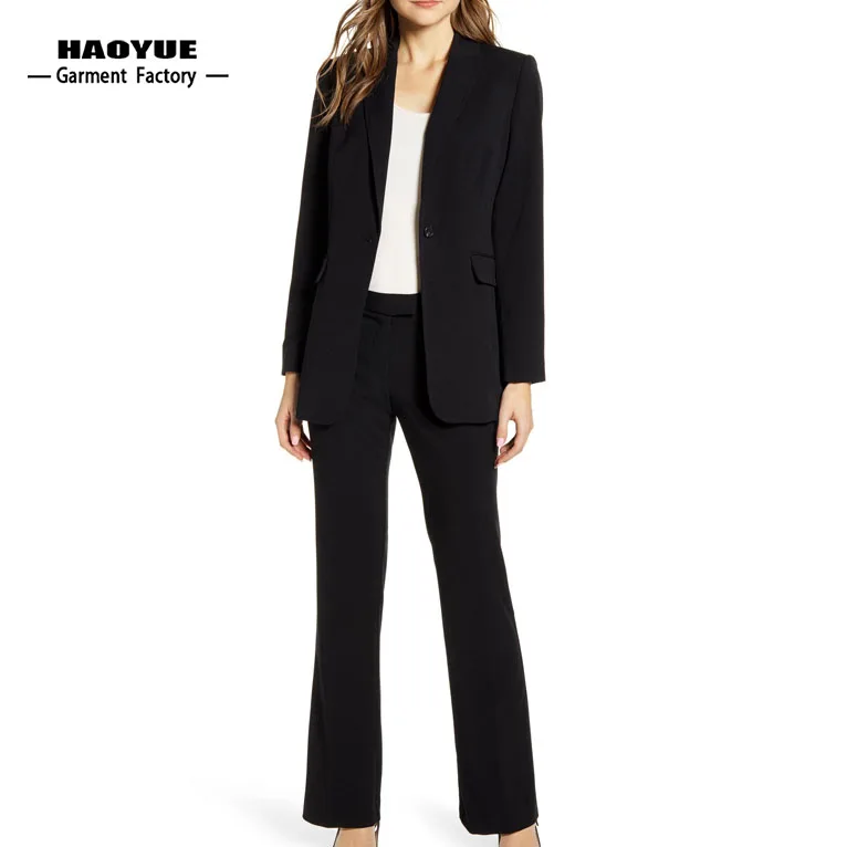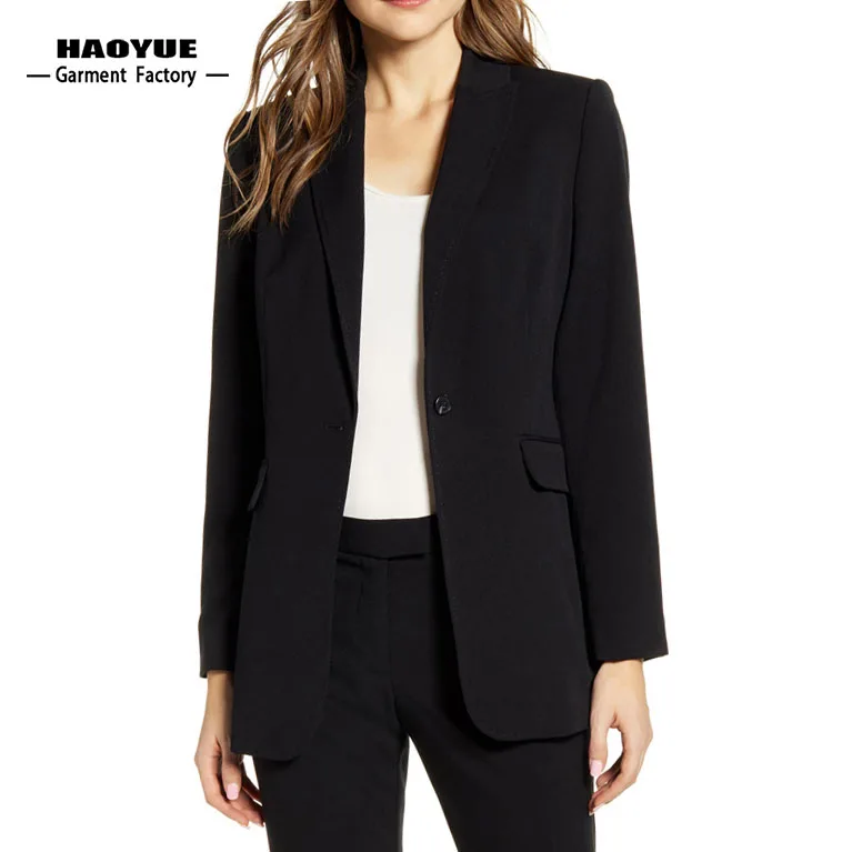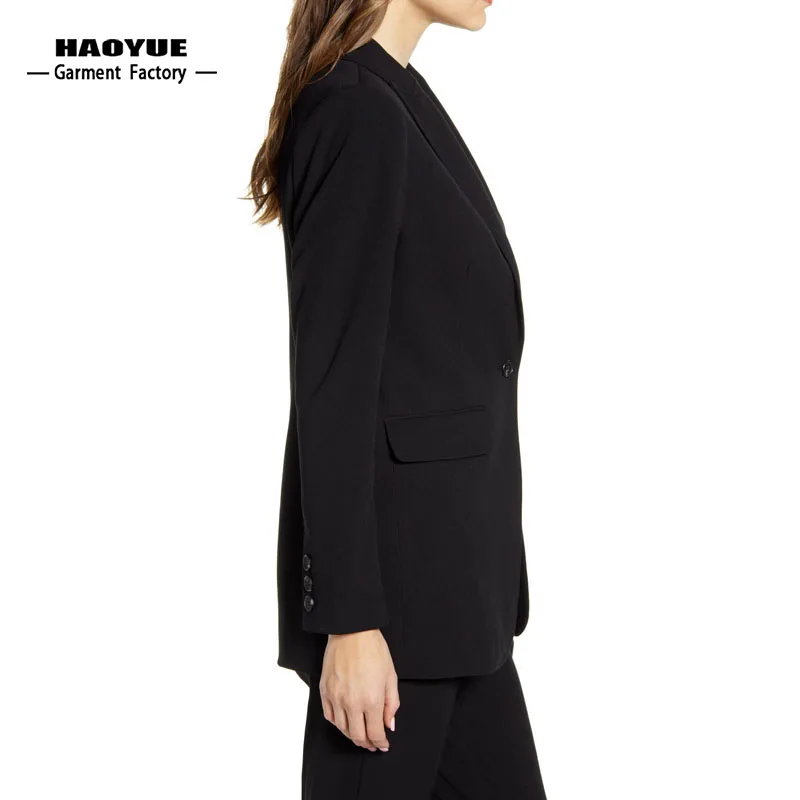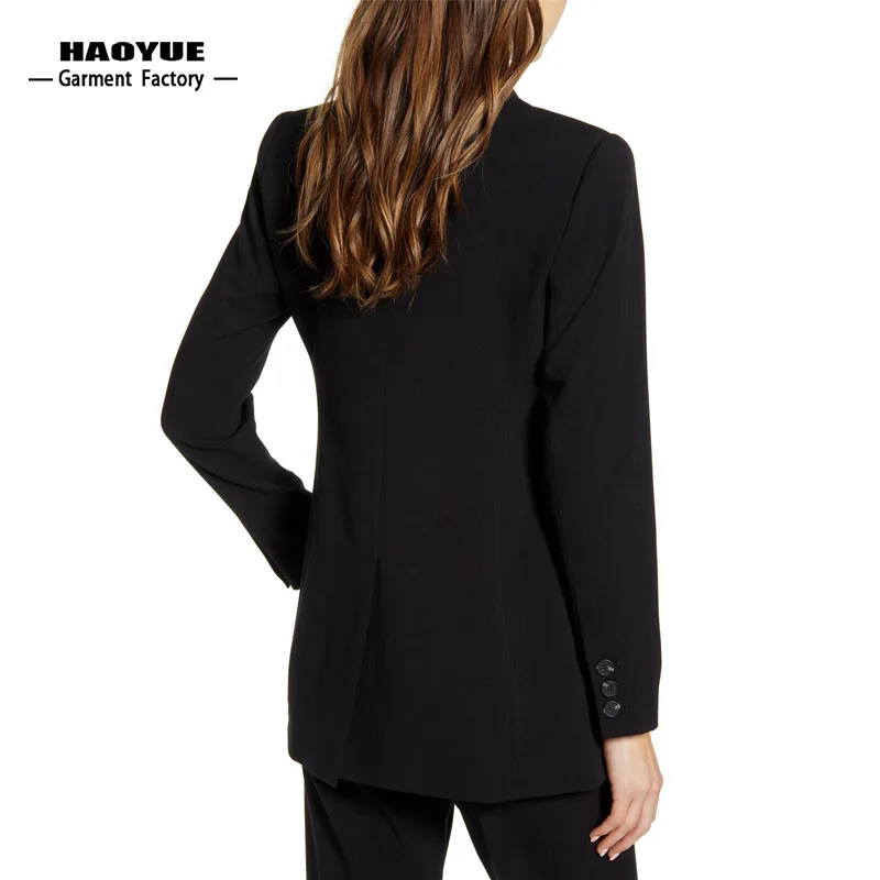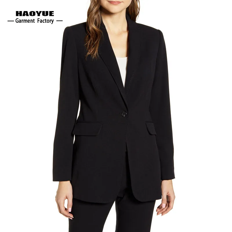 Clothing Manufacturer Custom Womens Clothing Notched Turtleneck Collar Single Black Suit Jacket Women