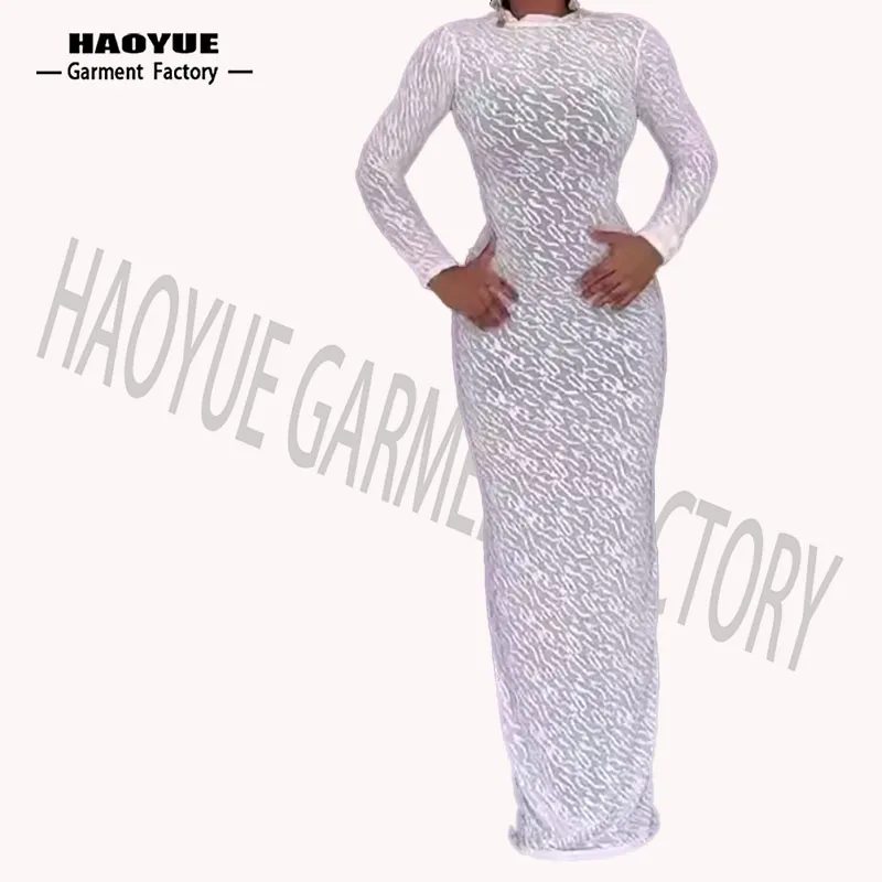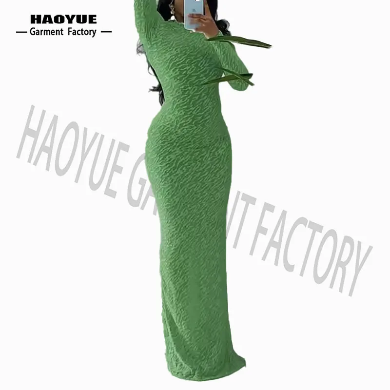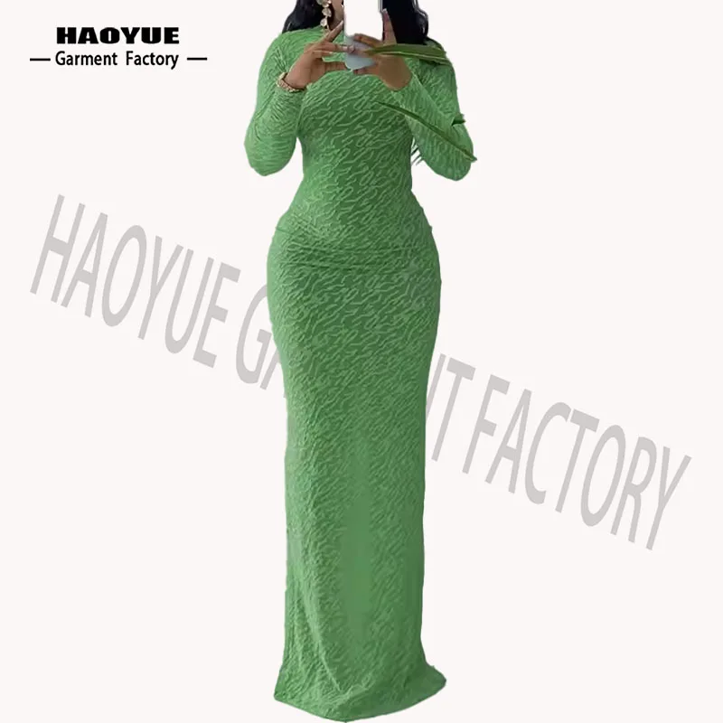 ZYHT 21541 Wholesale Crew Neck High Waist Casual Dresses Elegant Lace Velvet Mermaid Hem Ruched Long Sleeve Dresses for Women
