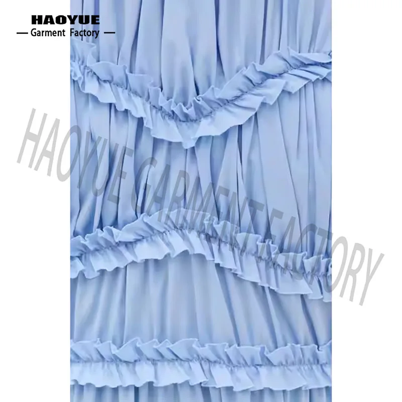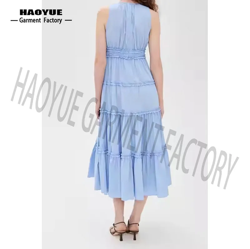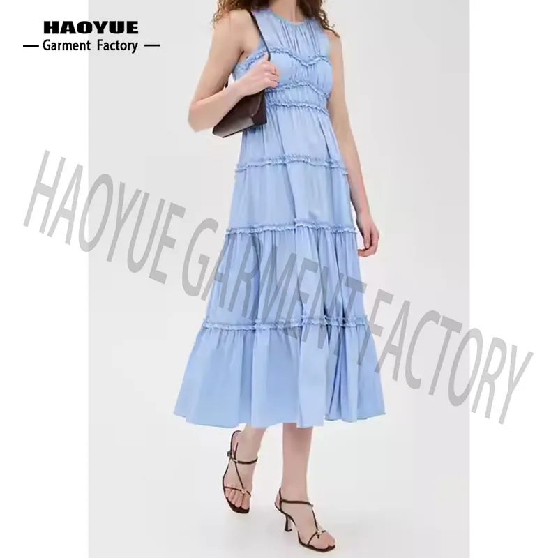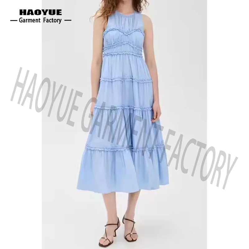 OEM High Quality Women Causal Dress Candy Color Sleeveless Ruffles Elegant Temperament Designer Premium Ladies Midi Summer Dress
