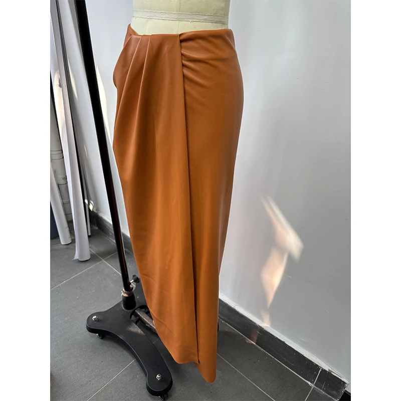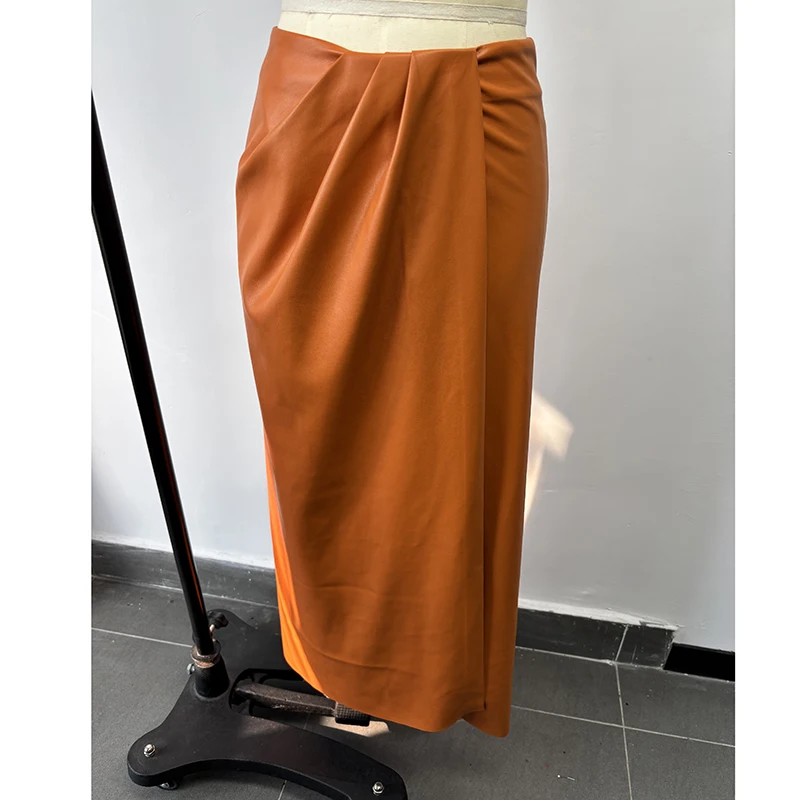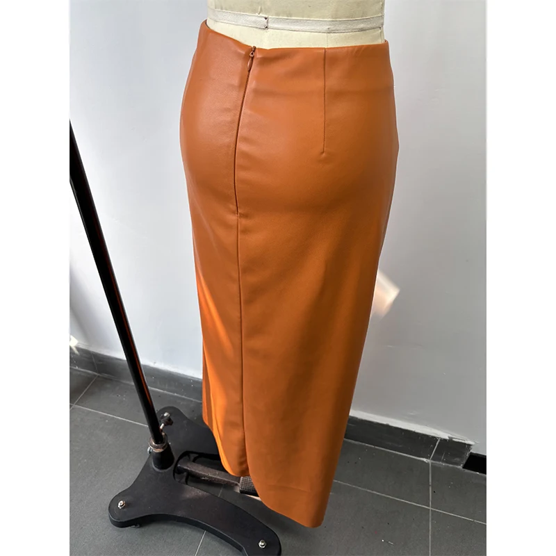 Custom Manufacturer High Quality Orange Leather Skirt Slim Fit Casual Dress for Women