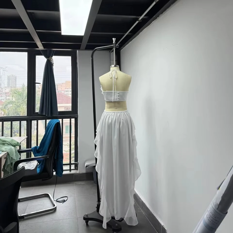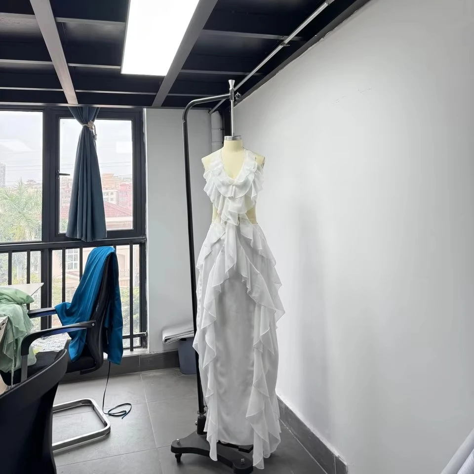 Custom Manufacturer High Quality Solid White Chiffon Slim Fit Casual Maxi Dress for Women