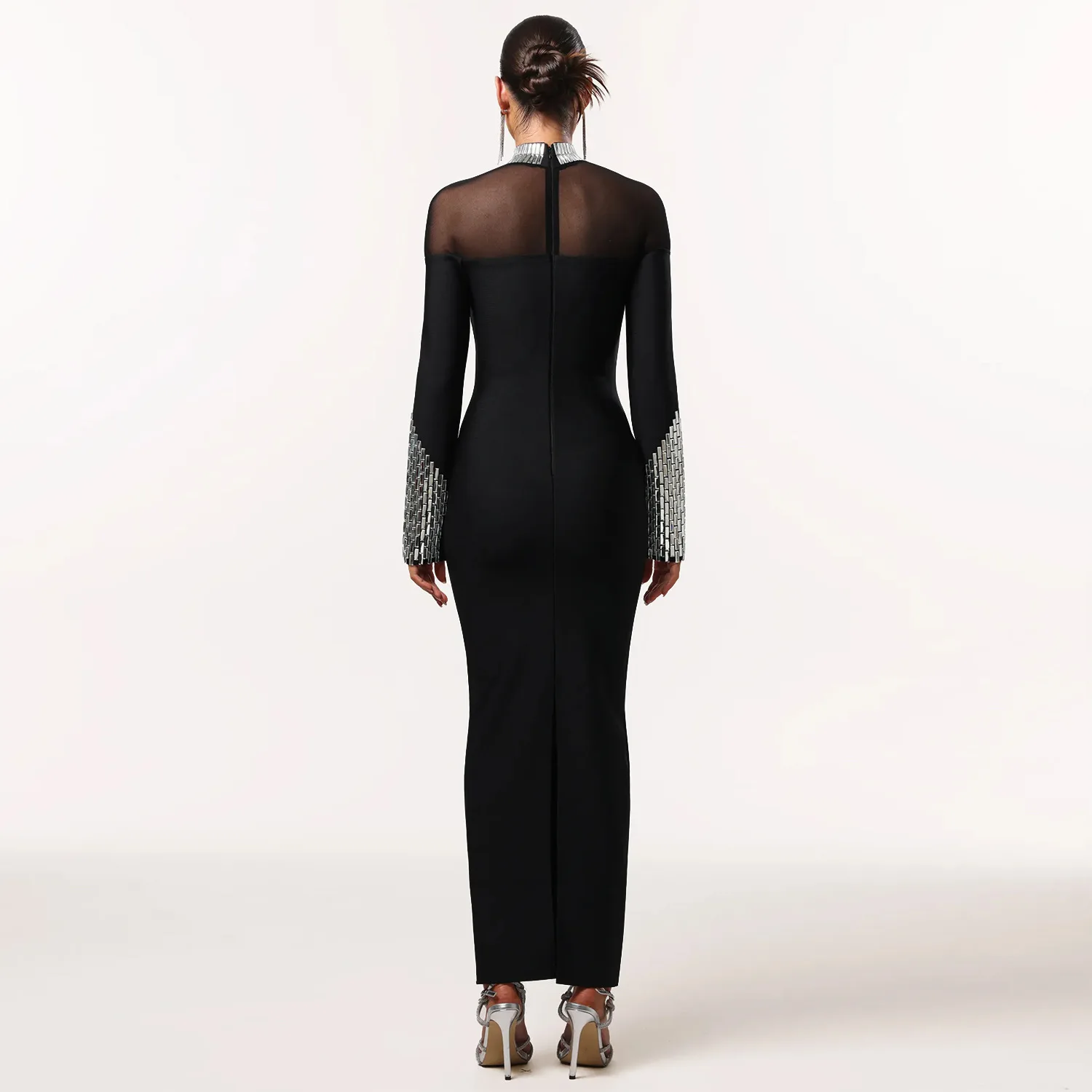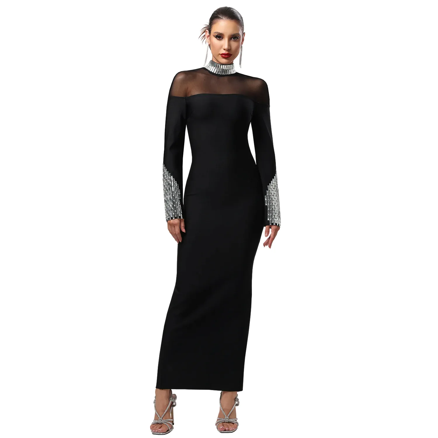 New Diamonds Rhinestone Mermaid Evening Dresses Woman Elegant Luxury Wedding Mesh See Through Patchwork Prom Formal Long Dress