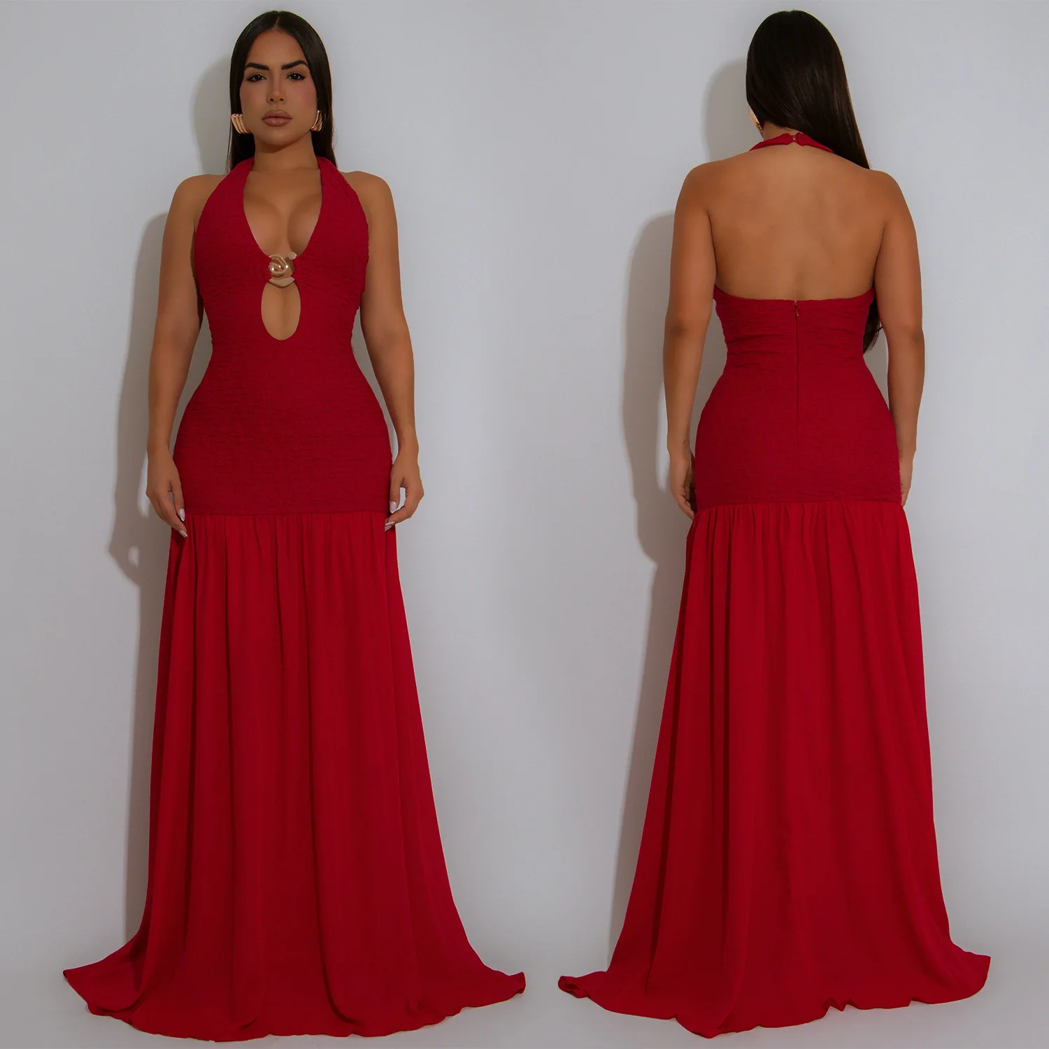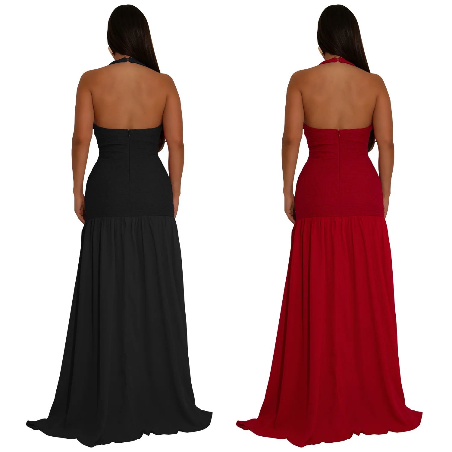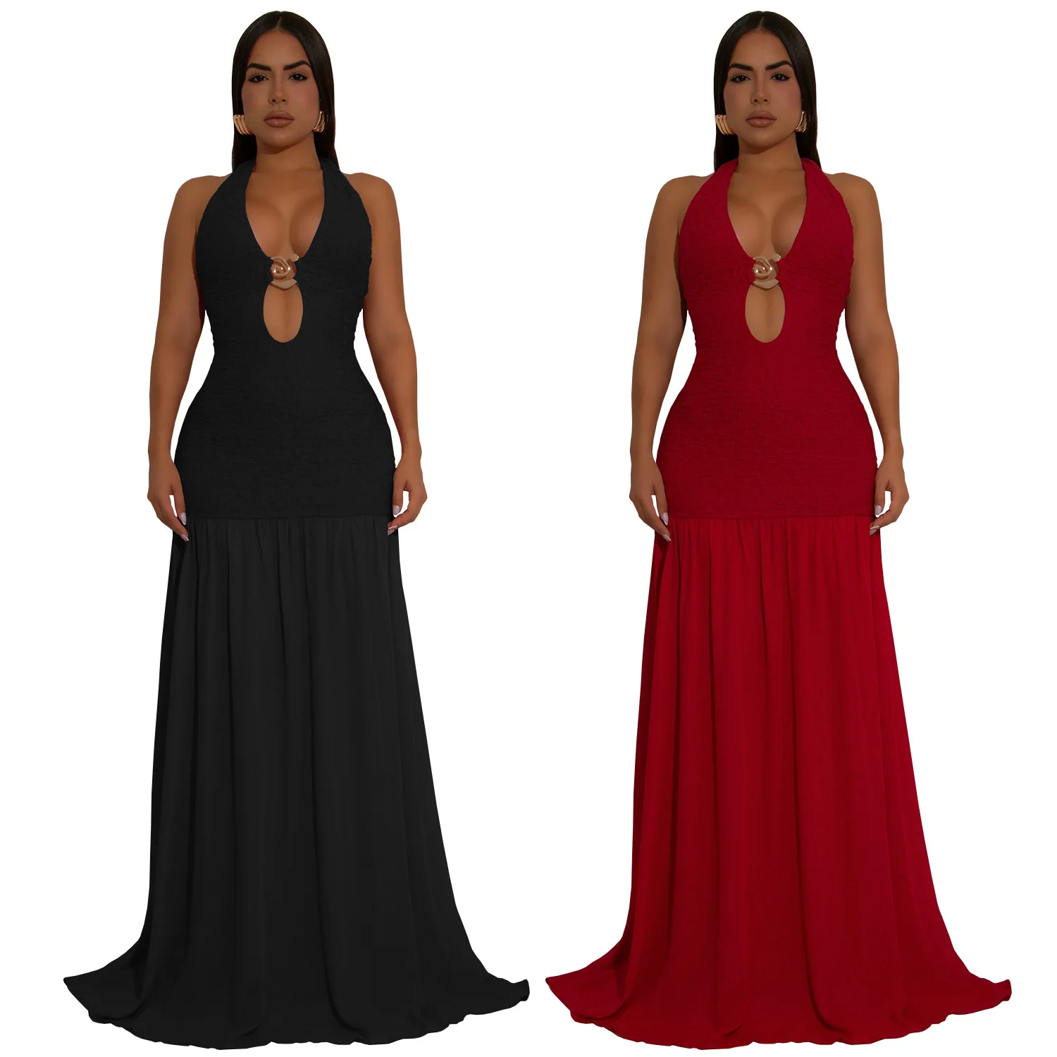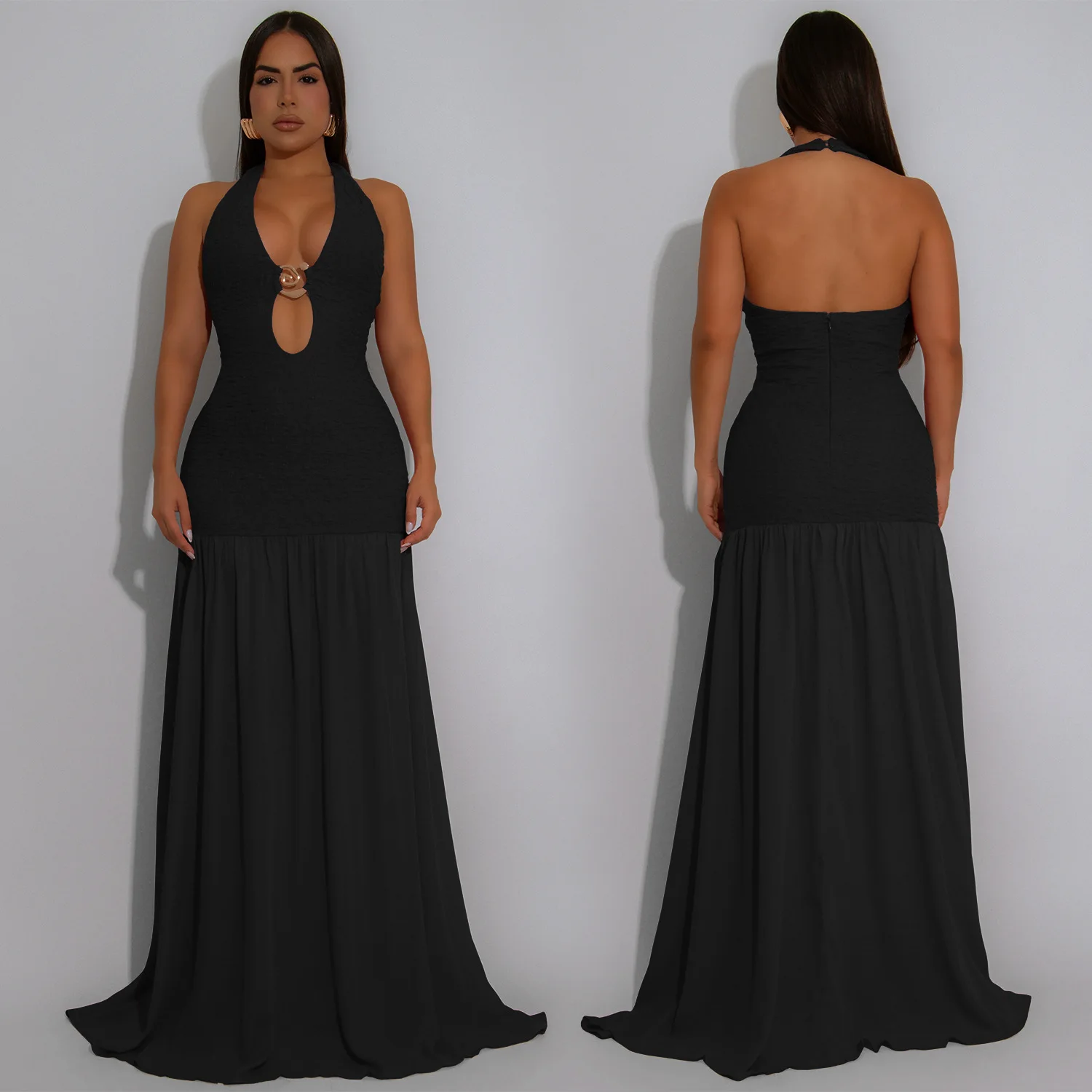 Women's Casual Long Dress V-Neck Halter Solid Sexy Empire Sustainable Spring Summer Autumn Use Wholesale Dress
