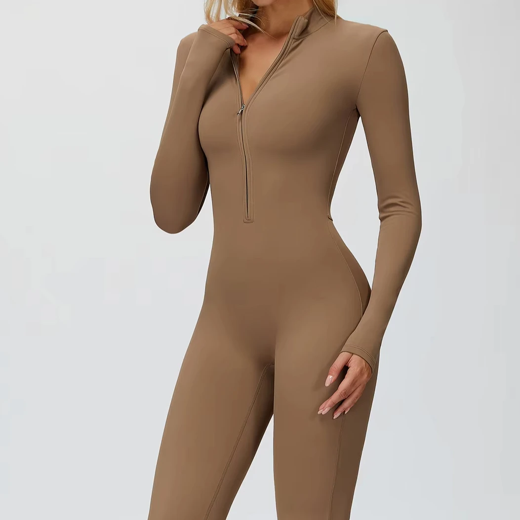 Women's Custom Logo Long Sleeve Gym Jumpsuit One-Piece Nylon Breathable Yoga Bodysuit for Spring Workout Fitness Sports Wear