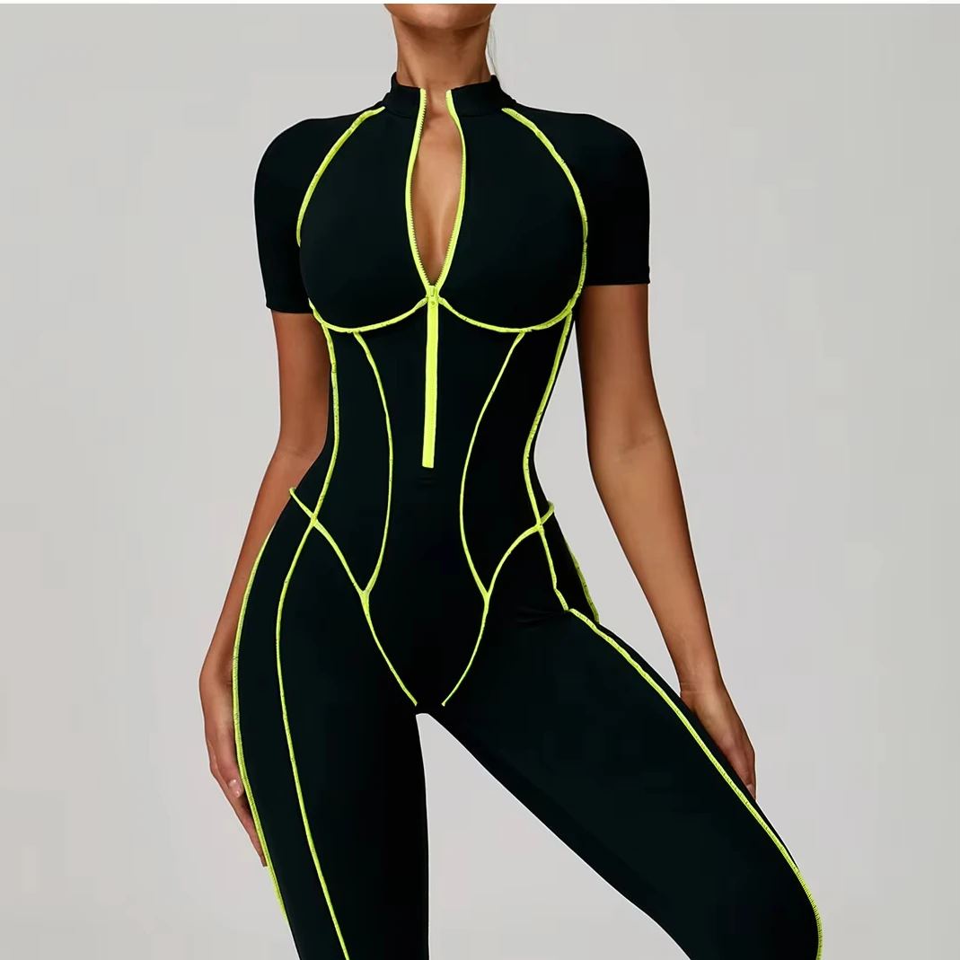2025 LuLu Sexy Athletic Rompers Short Sleeve Zip up Activewear Workout Bodysuit Yoga Jumpsuit for Women