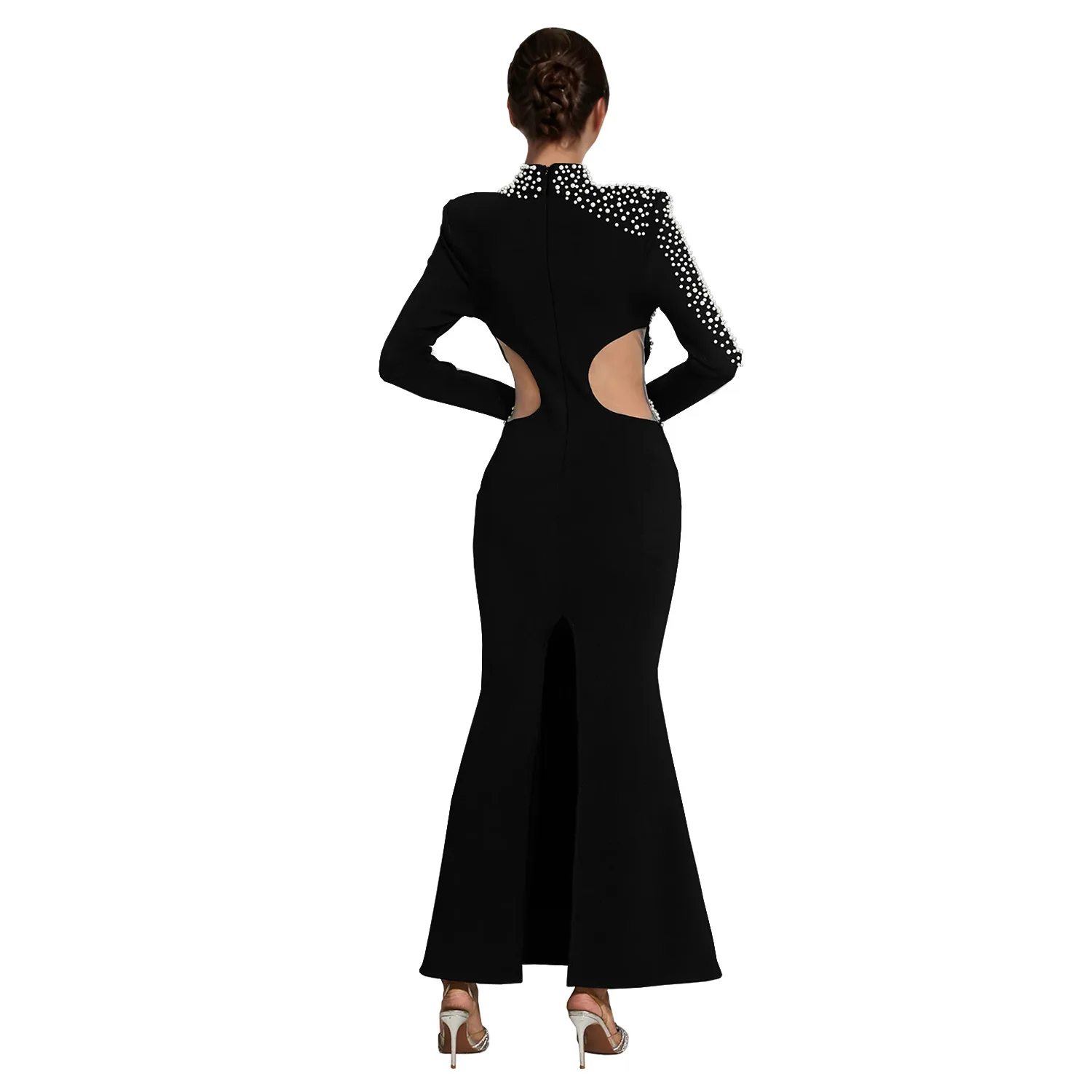 ZYHT 15325 Wholesale Spring Trendy Fashion Long Sleeve Dinner White Lace Black Velvet Elegant Party Dress Women Evening Dresses