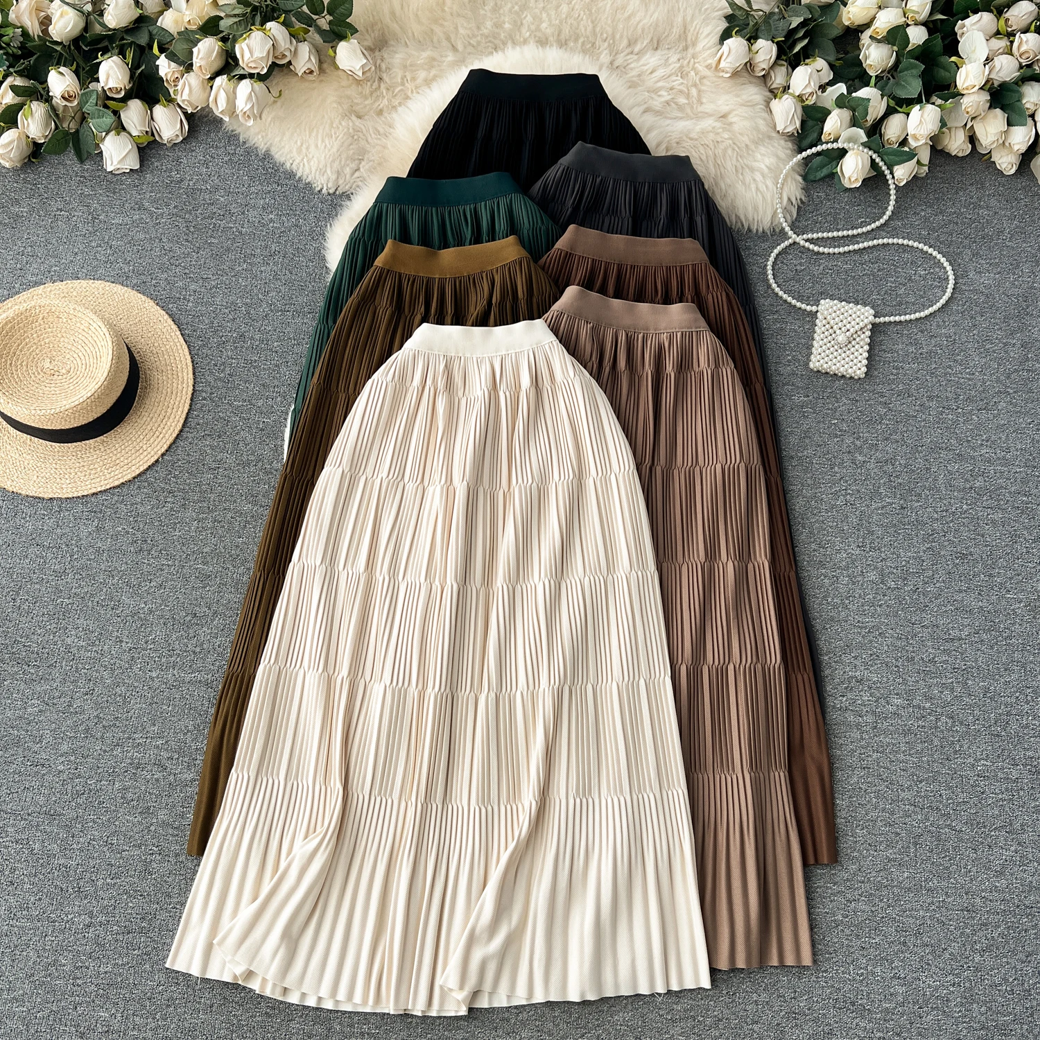Autumn Winter New Knitted Half Length Skirt Versatile Woolen Skirt High Waist Slimming Mid Length Skirt