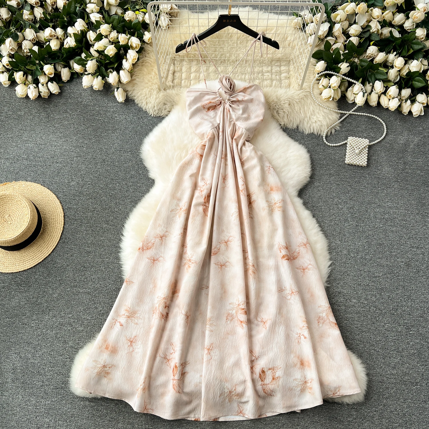 Customized Sweet Vacation Skirt 2024 Summer French Hanging Neck Strap Fairy Dress