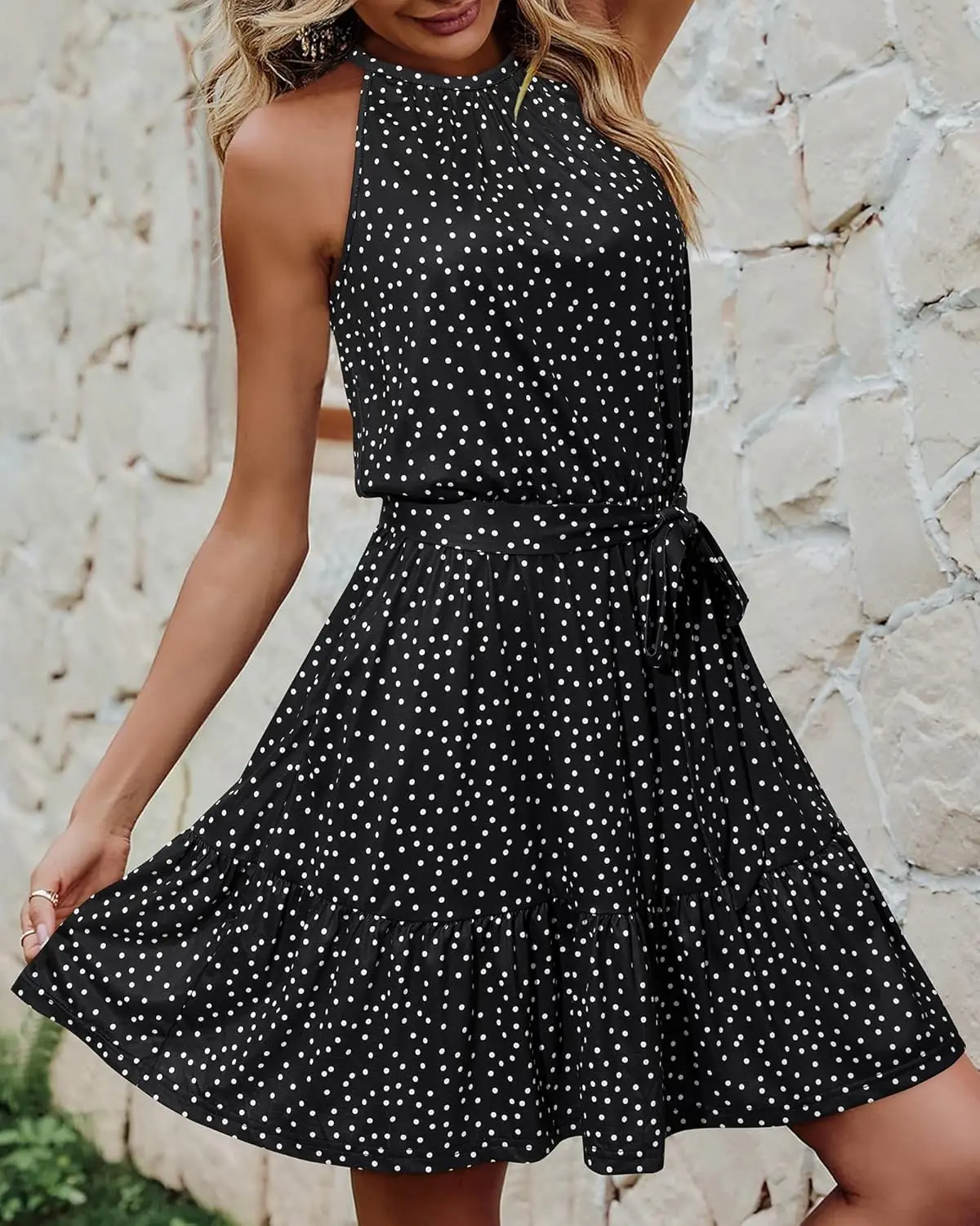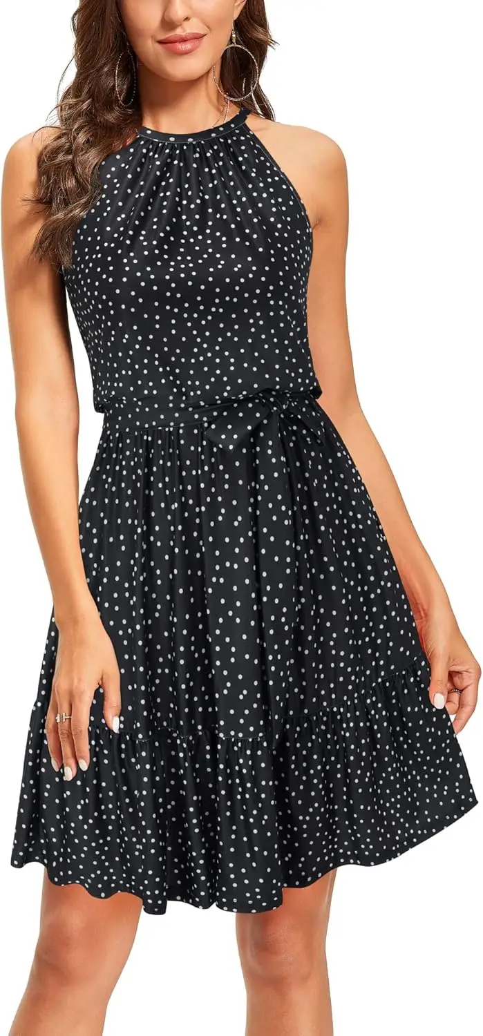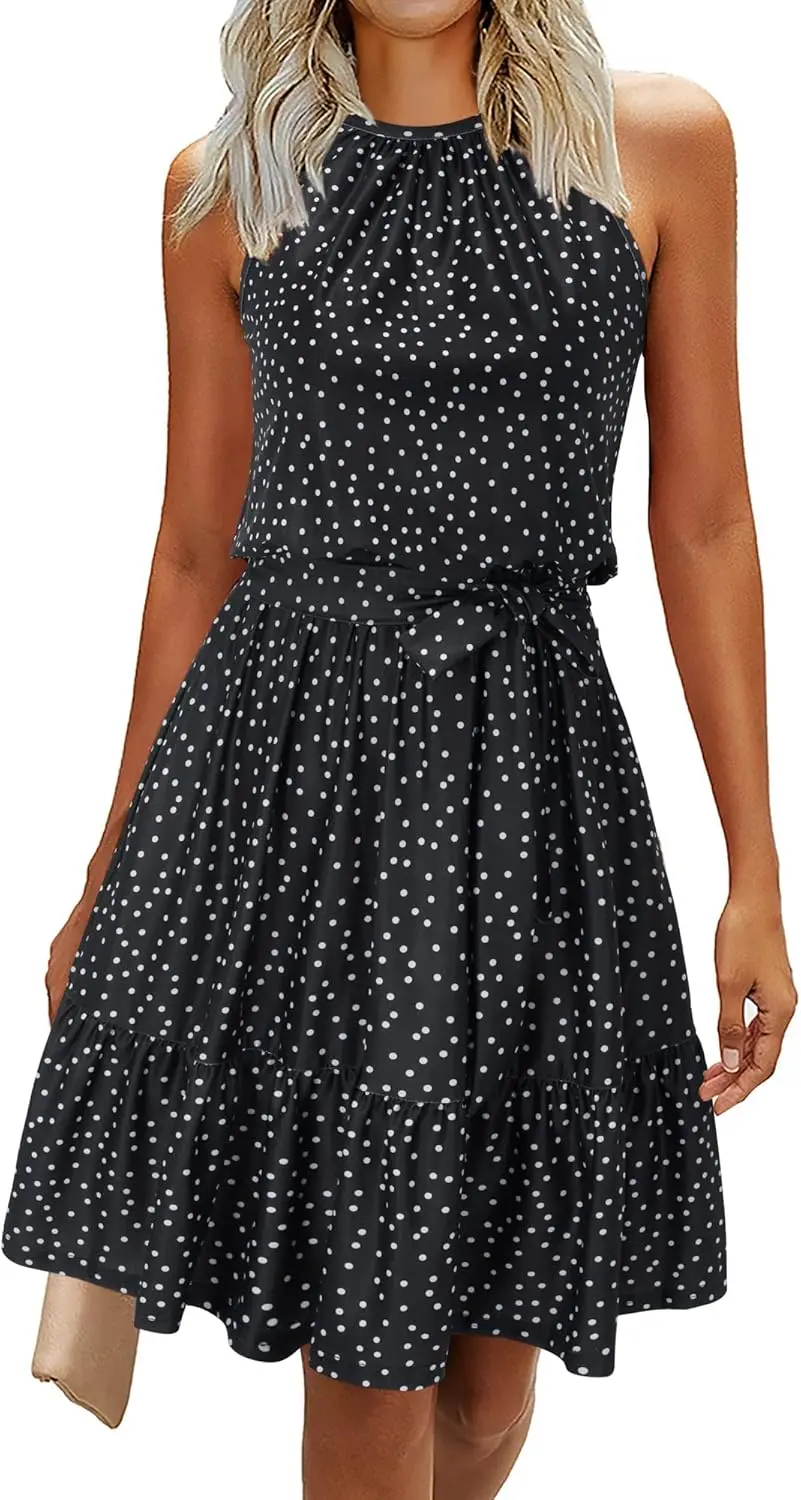 Wedding Guest Casual Beach Vacation Outfits Leopard Sweet Belted Knee-Length High Waist Sundresses Pockets Womens 2025 Summer